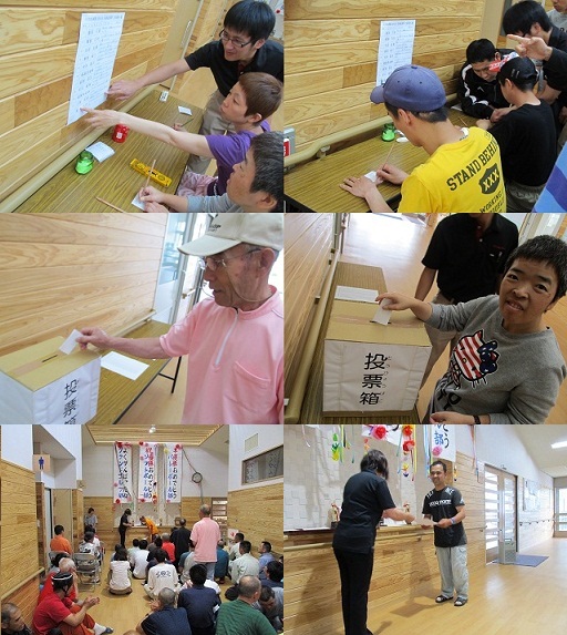 新役員に選ばれた利用者の方を中心に生活や行事等をより良く運営できるように職員はサポートしていきます。