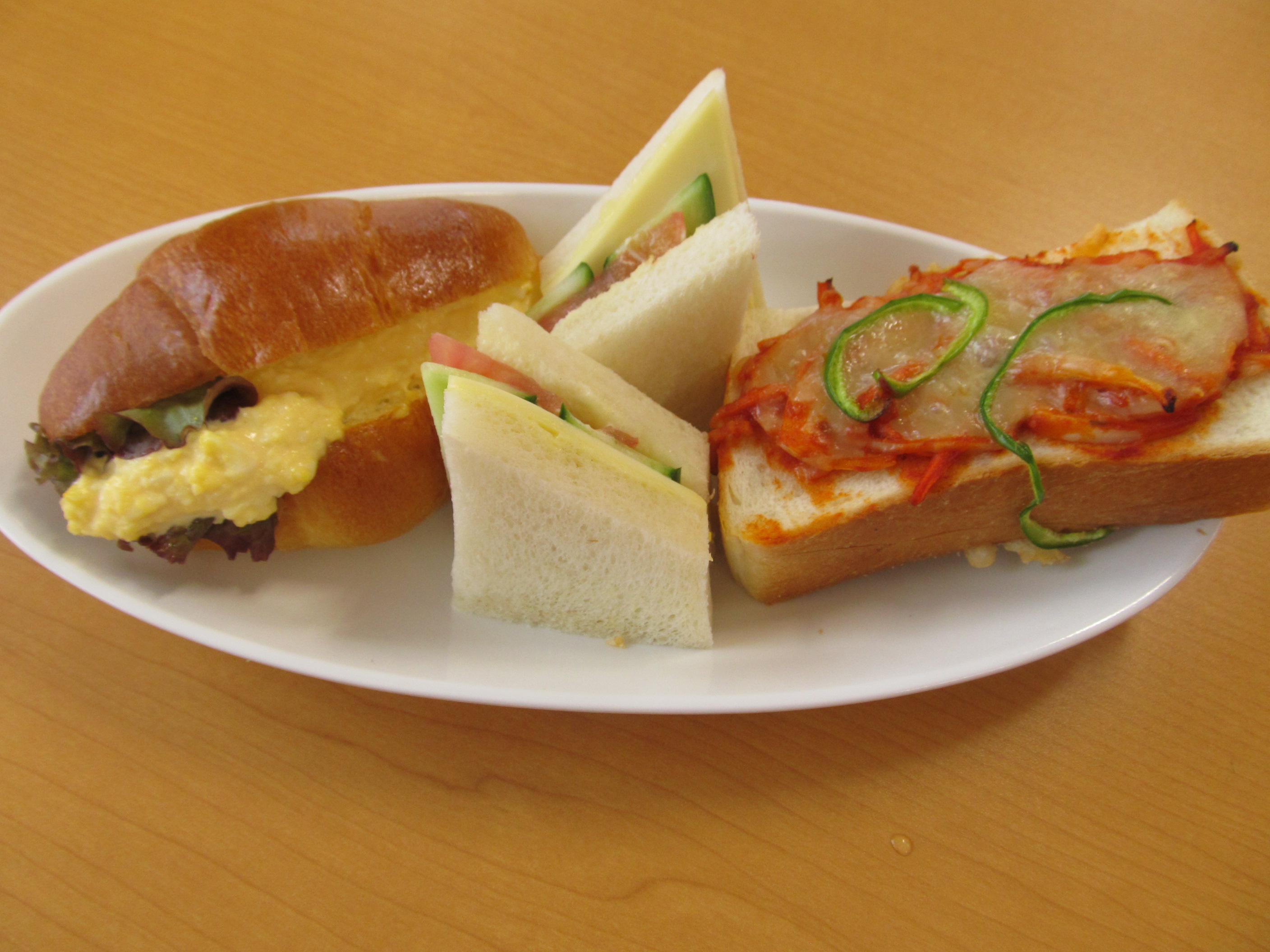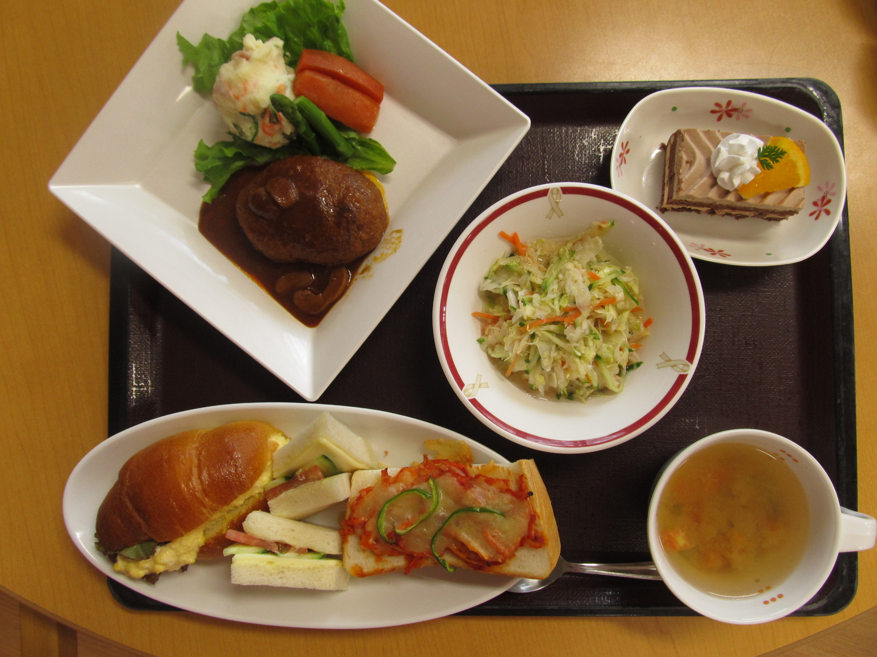 洋食で煮込みハンバーグとピザ&サンドイッチ