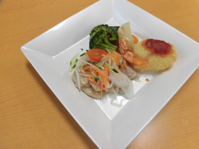 コンビメニュー(えびのポテト巻きフライ&鶏肉の野菜南蛮漬)