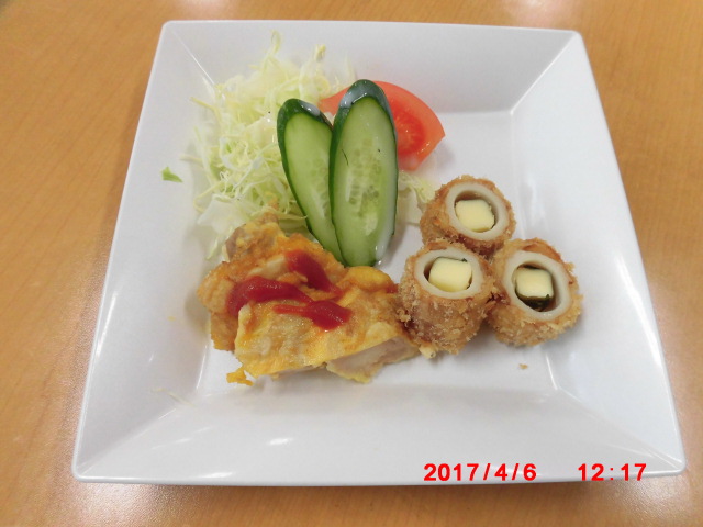 コンビメニュー(竹輪のチーズ揚げ&ポークピカタ)