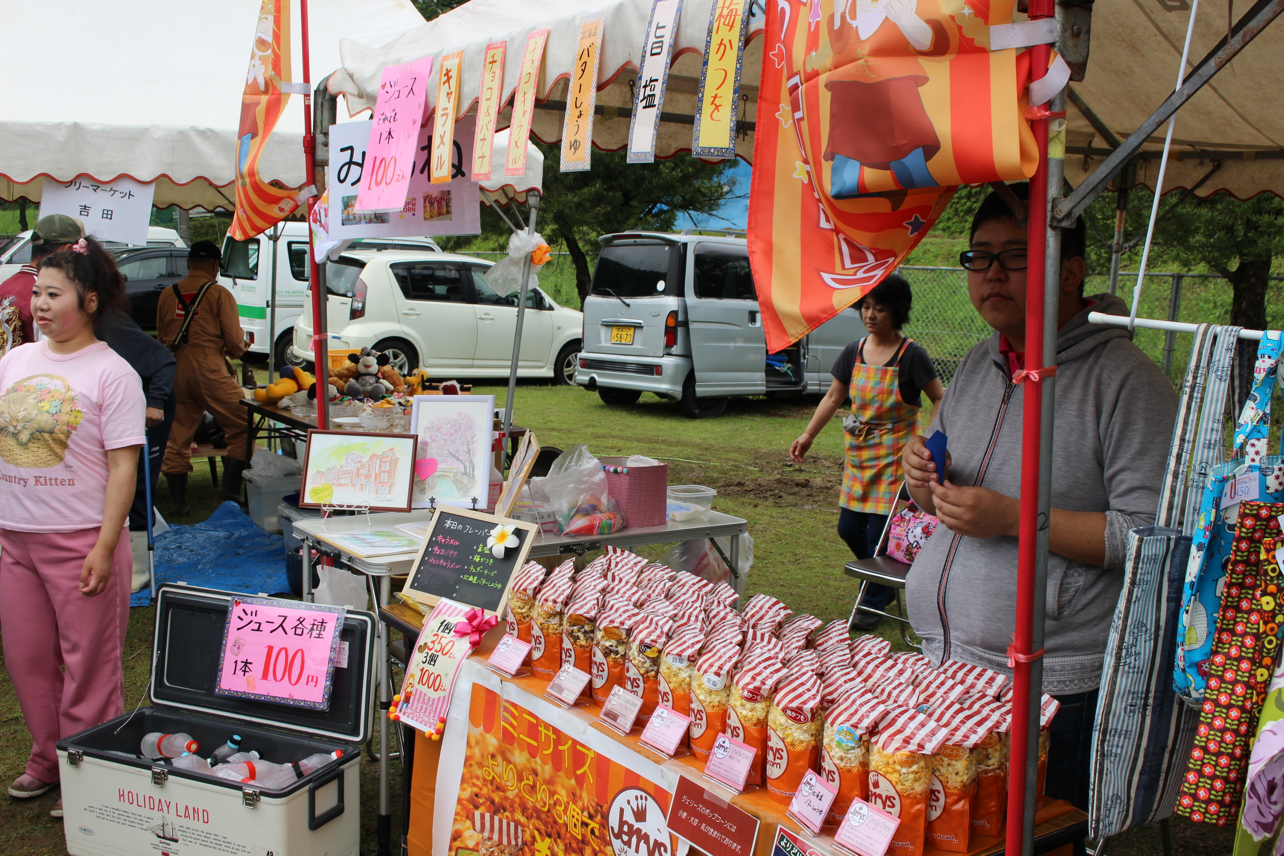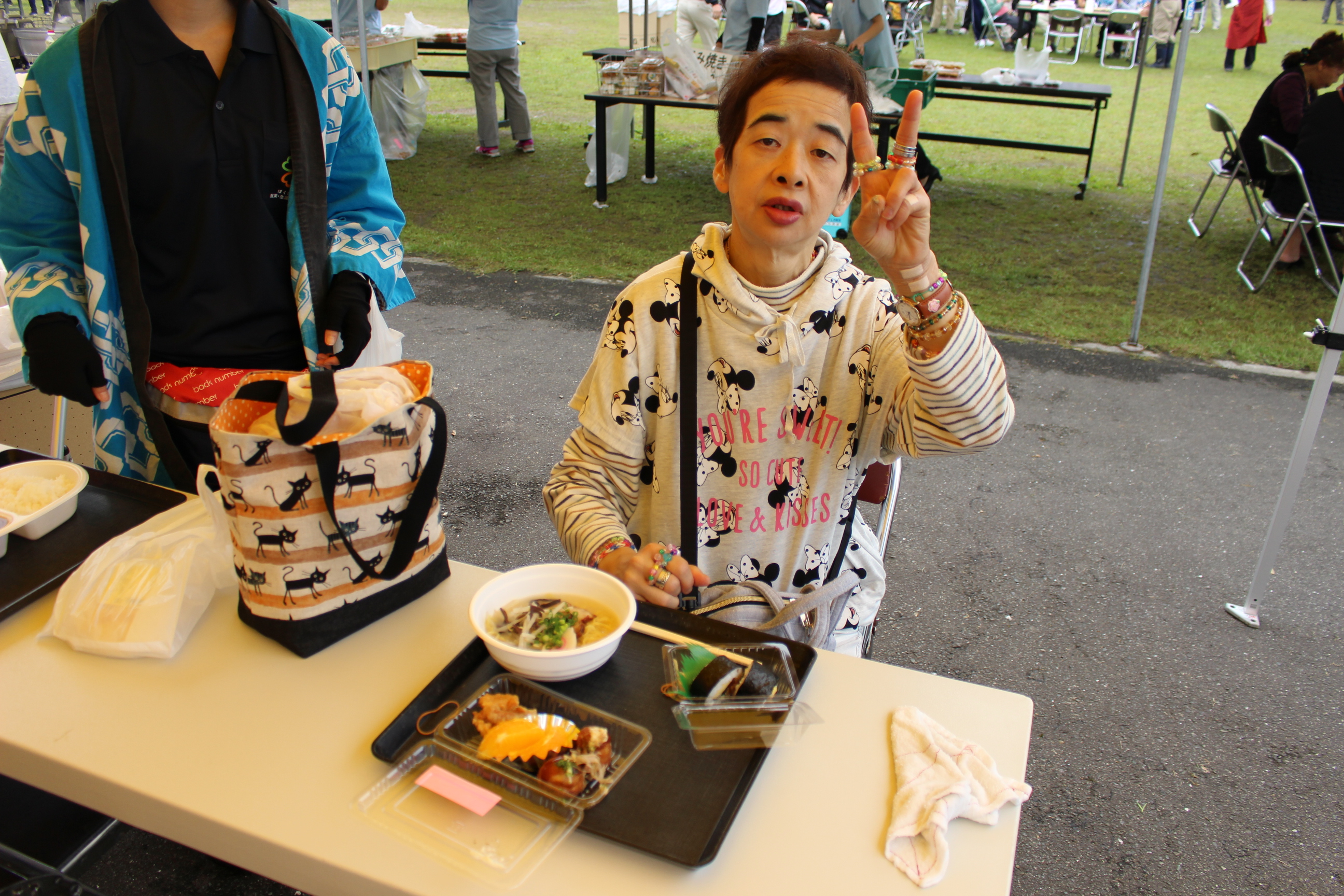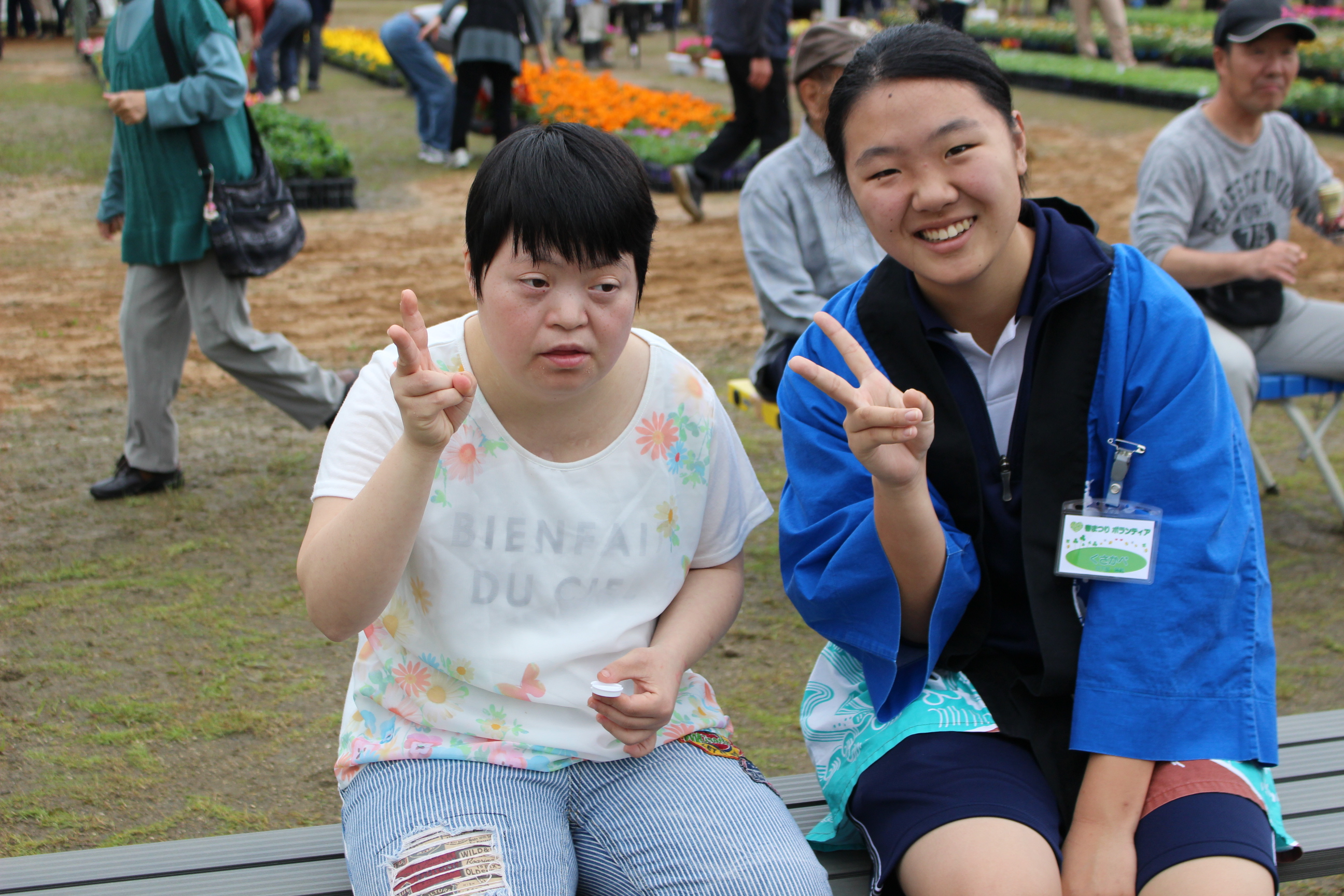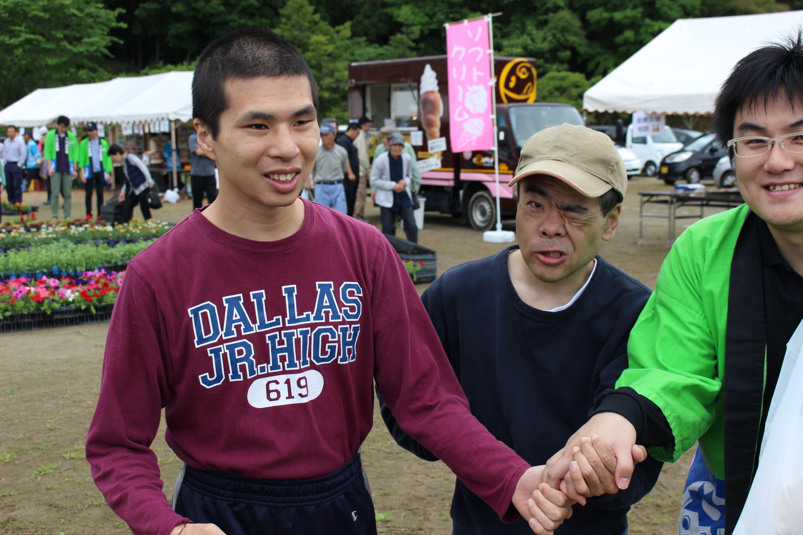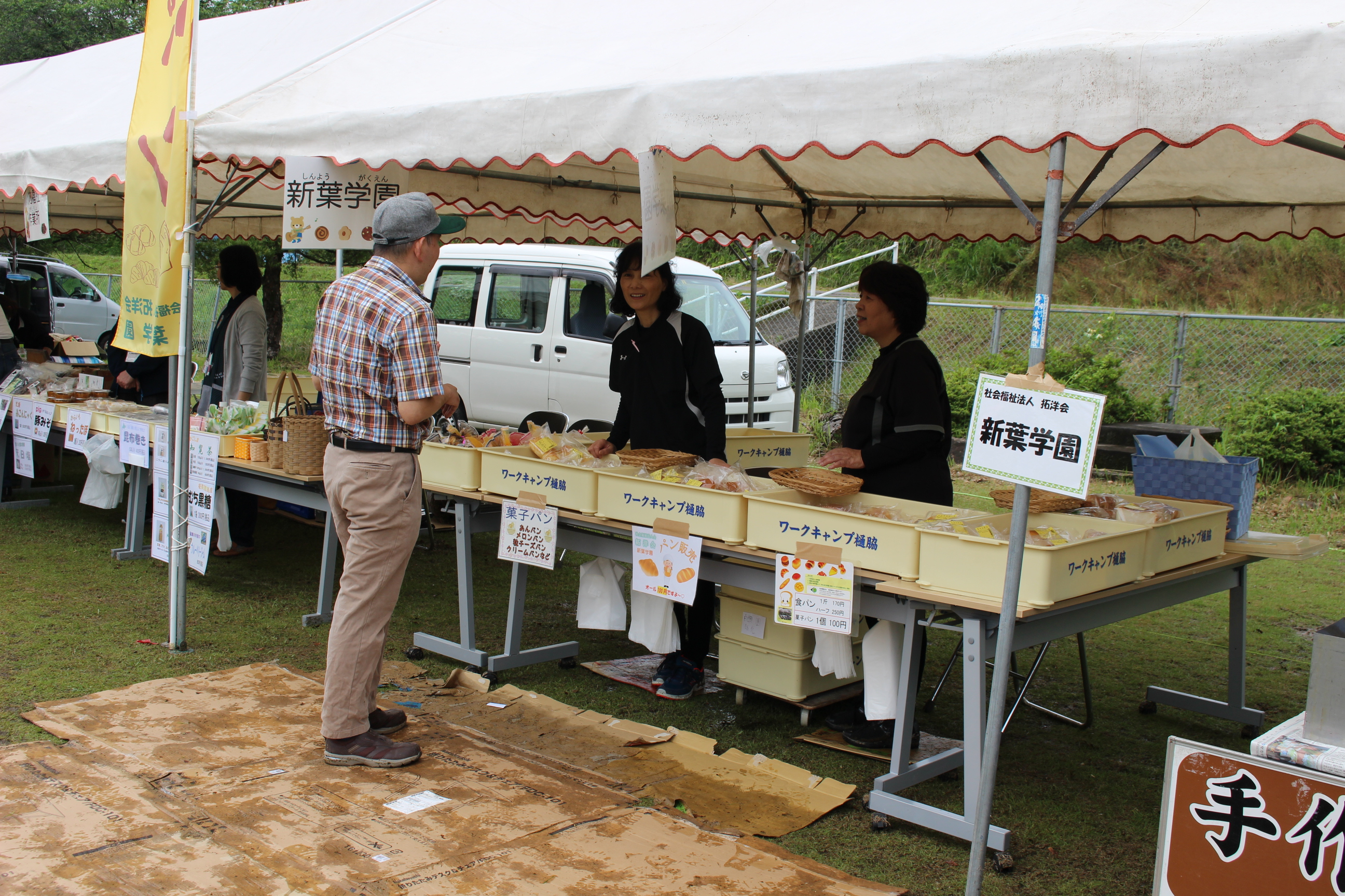 今回も園からはフリーマーケット,就労継続支援B型の花苗・培養土・野菜といった生産品,生活介護からは陶芸品や木工品,就労・自立からは手芸用品と,各事業所からこの日に向けて準備をしてきました。またそれ以外にも地域の方々や施設より,手作りのパンやからあげ,アイス,ポップコーン,雑貨など数多く出店があり,利用者の皆さんも買い物や地域の方々との交流を楽しんでいました。また春まつりを楽しむだけではなく,利用者の皆さんも自主的に春まつりの準備や運営を手伝ってくれました!