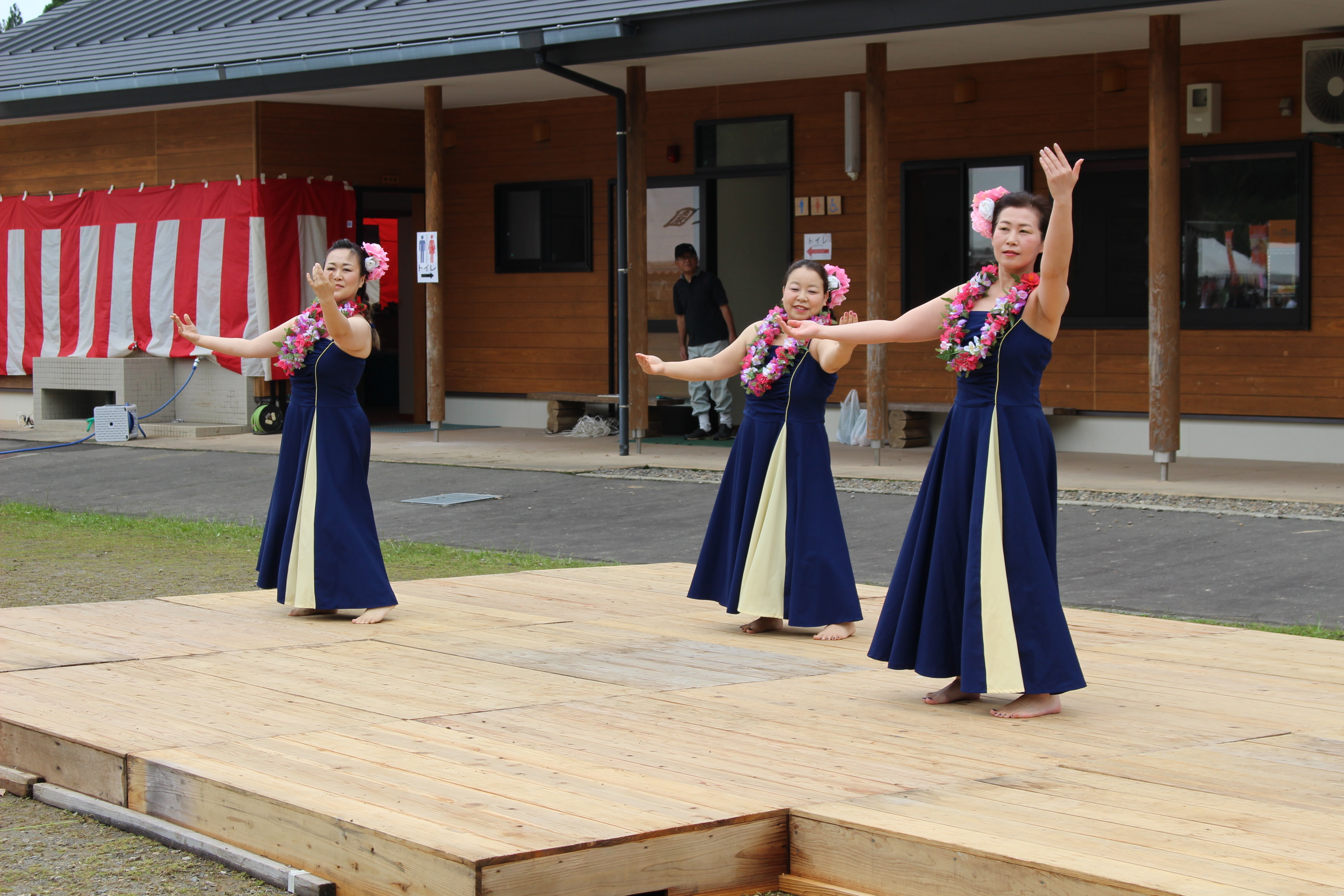 出演の部でも,地域の保育園の皆さん,地域のフラダンス,フラメンコ教室の方々,そして初登場としてけん玉・バルーンアートを披露してくださった方もいらっしゃいました。また川内自興園の利用者の方々も,元気いっぱいのダンスや歌を披露してくれました。