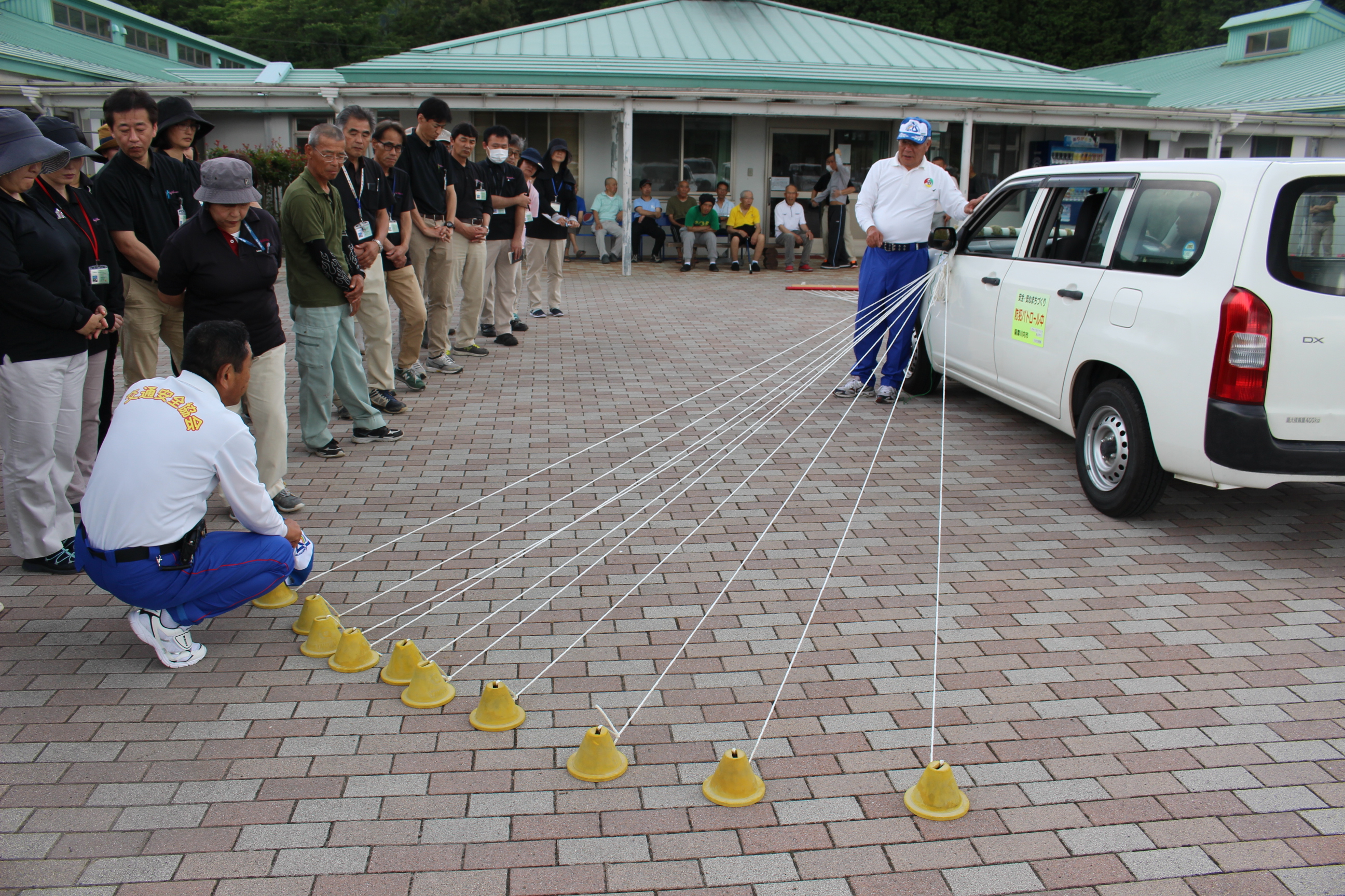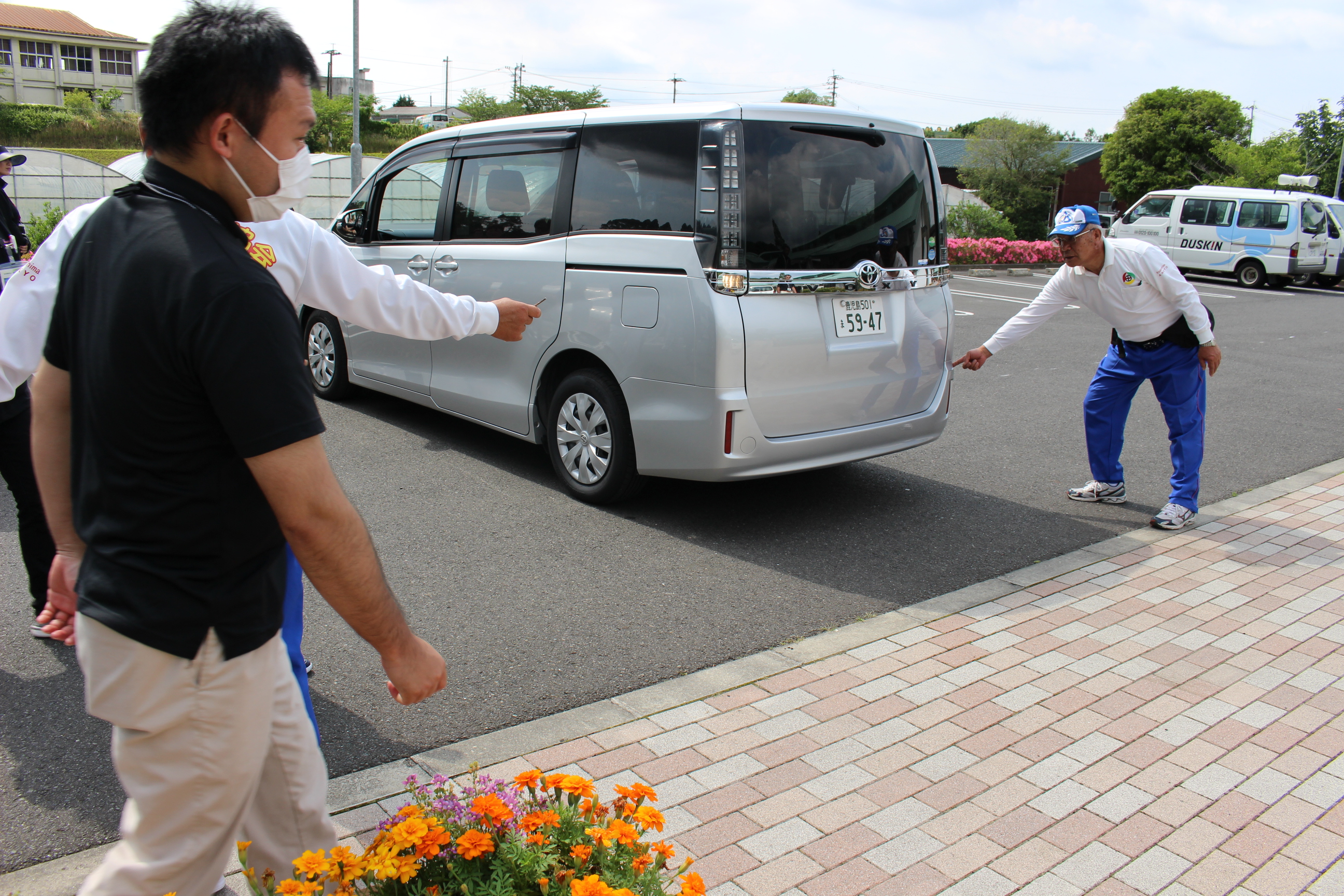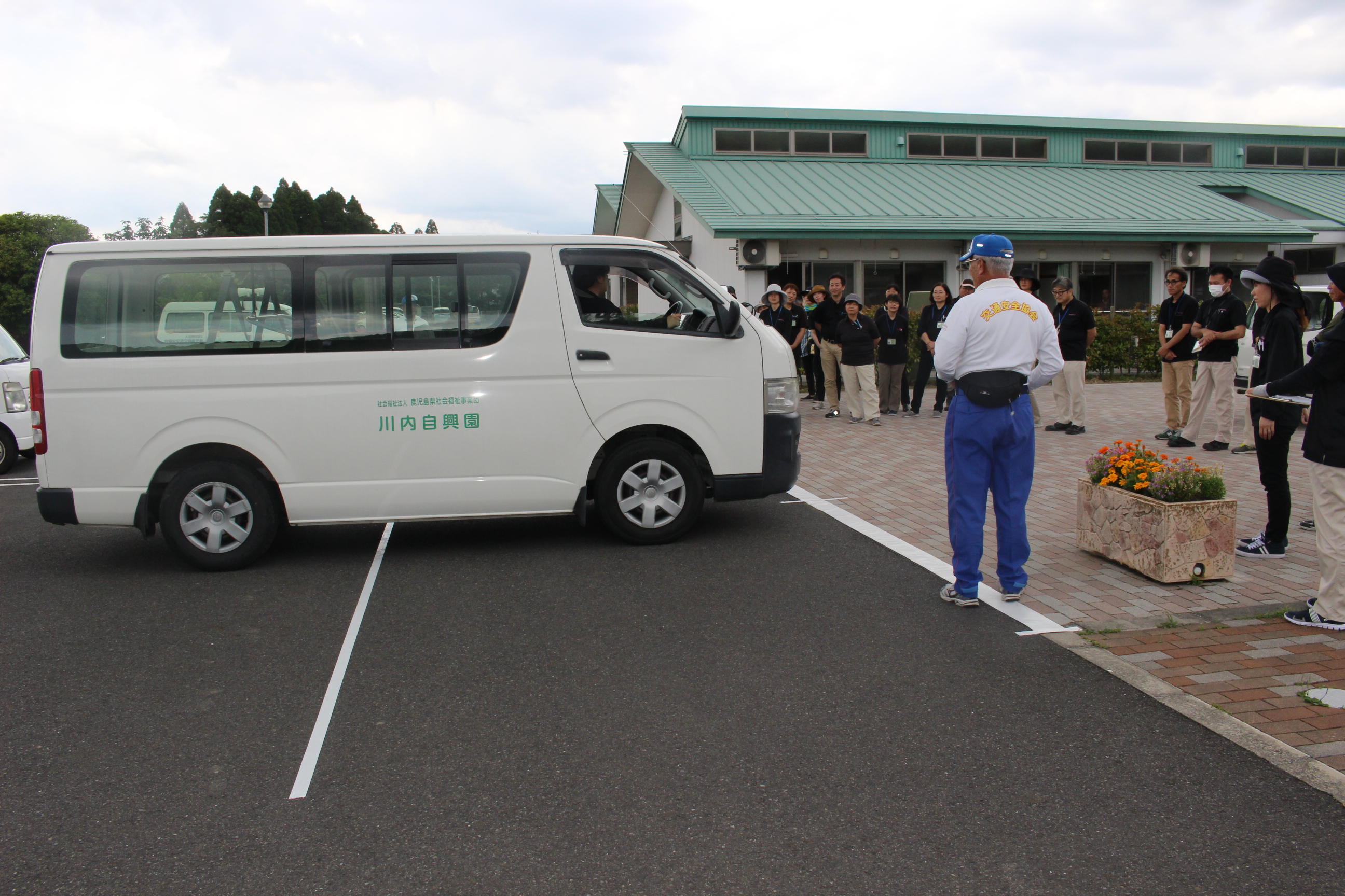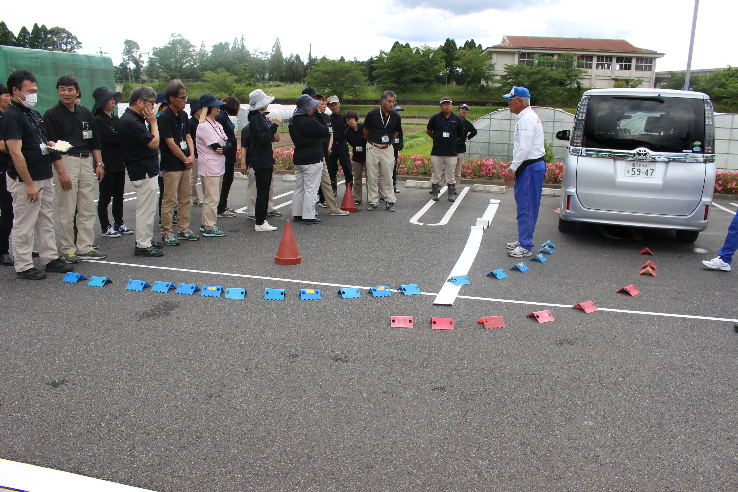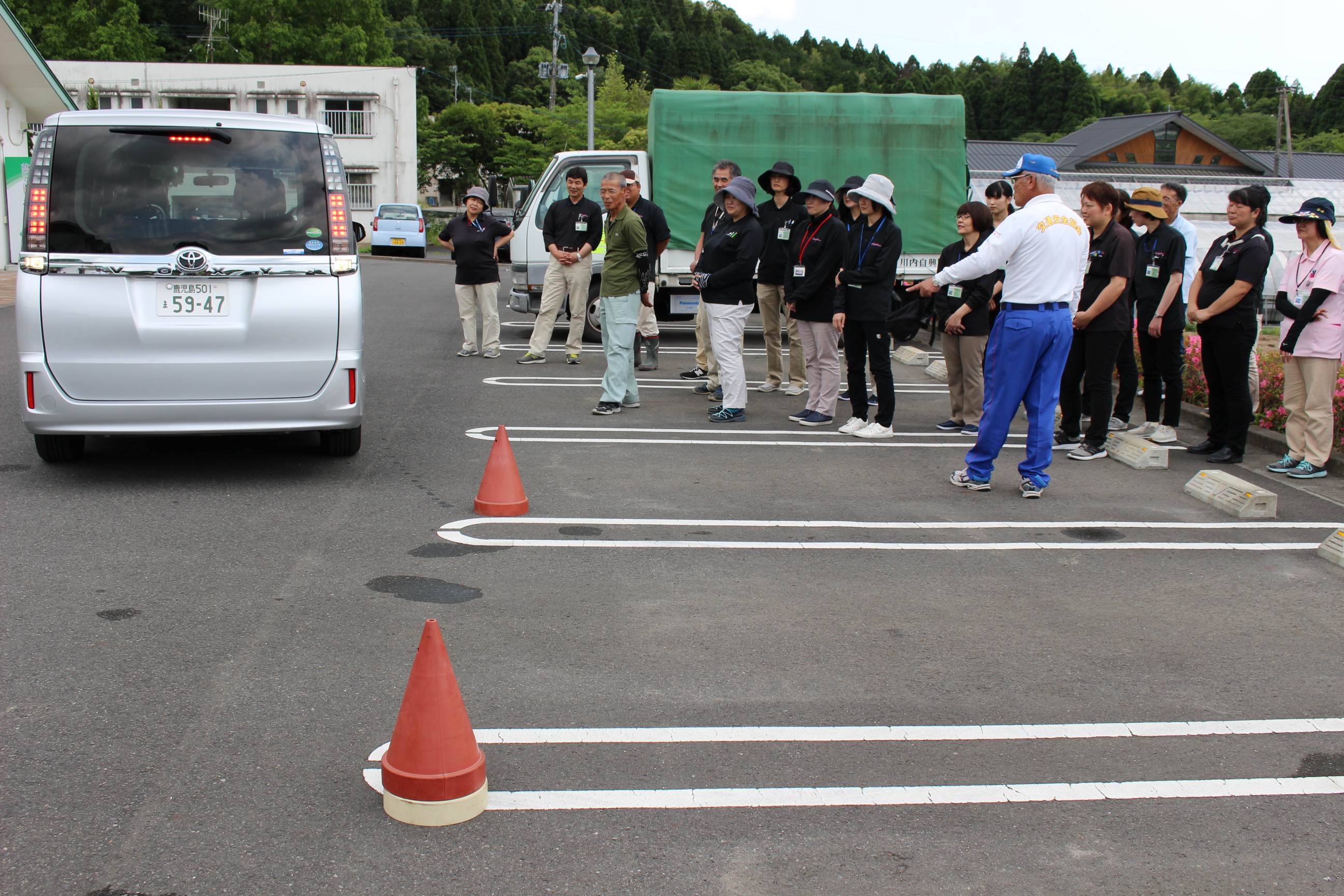 当園においては、8人乗りの送迎ワゴン車や農作業等で使用するトラックなど、大小様々な公用車があります。そこで、座学に加えて、運転する際に気を付けるべきポイントを職員に肌で感じてもらうため、実際に運転をする実地指導も行っていただきました。
