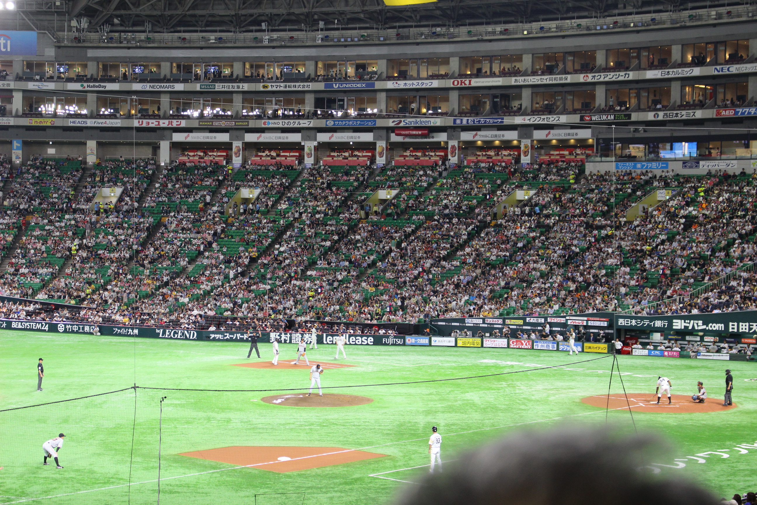 そして1日目の最後の目的地は、今回の旅行の一番の目玉でもあるヤフオクドームでのソフトバンクVS巨人の試合観戦です。普段はテレビで見る野球中継とは違い、球場の熱気であったり、プロの選手のプレーの迫力に利用者の皆さん驚きながらも、一生懸命応援する姿が見られました。