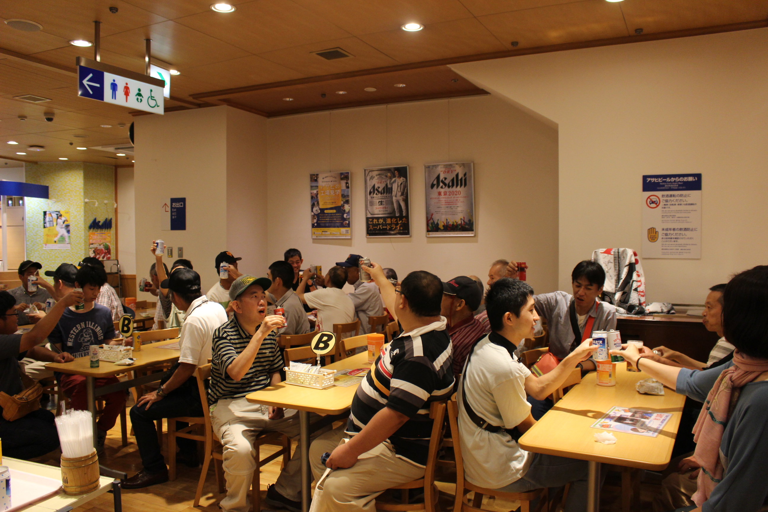2日目はアサヒビール工場を見学し、アサヒの製品が作られる過程を学ぶことが出来ました。普段見慣れている商品が作らるている様子を見て、利用者の皆さん「へ~。」、「あっ、これ知ってる。」といった感想を話ながら見学していました。工場内を見学し終えると、アサヒのジュースやコーヒー、ビールを試飲することが出来ました。