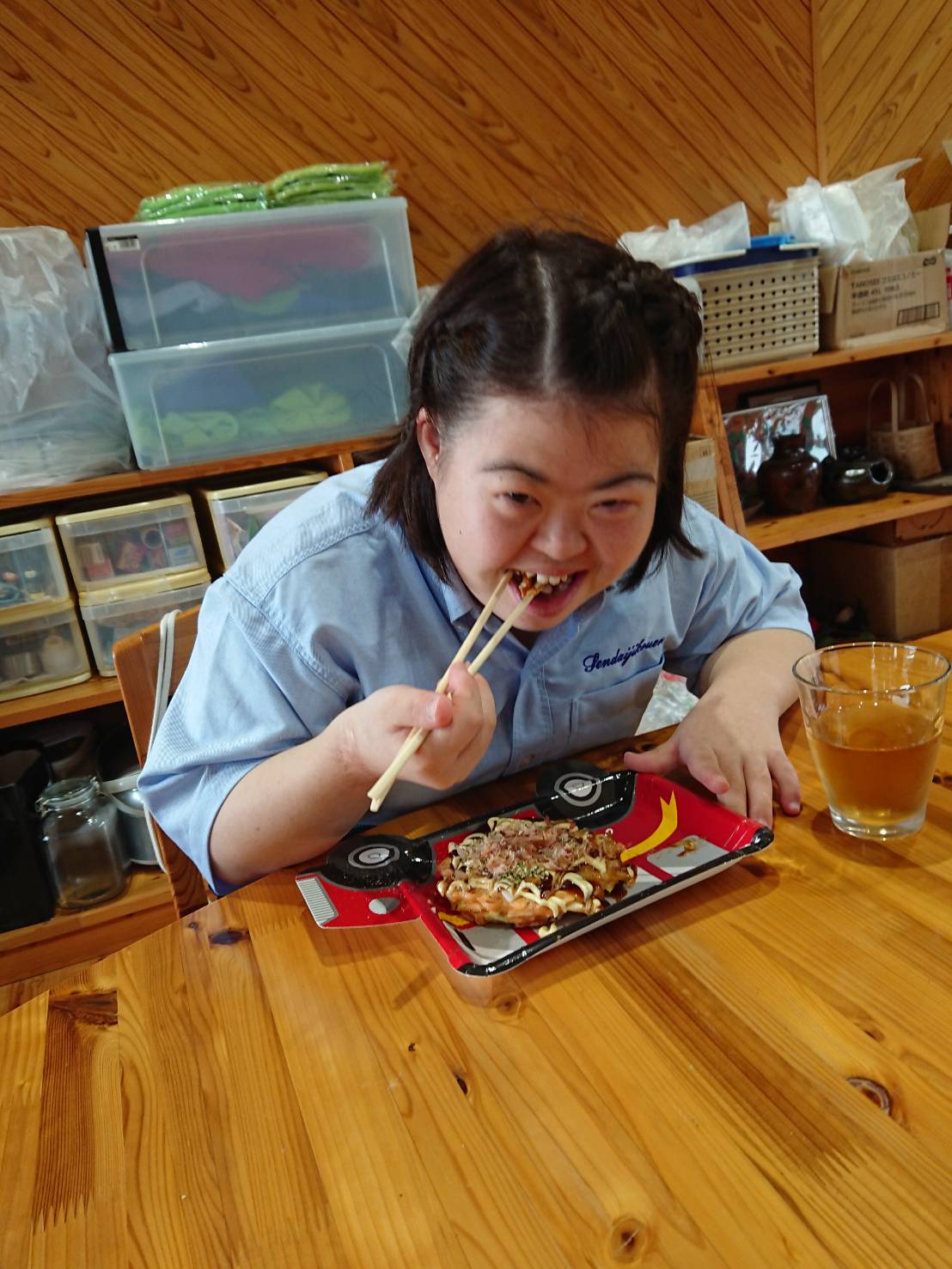 最初はお好み焼きを裏返すのが難しい様子でしたが、皆さんすぐに慣れ、上手に裏返すことができていました!
