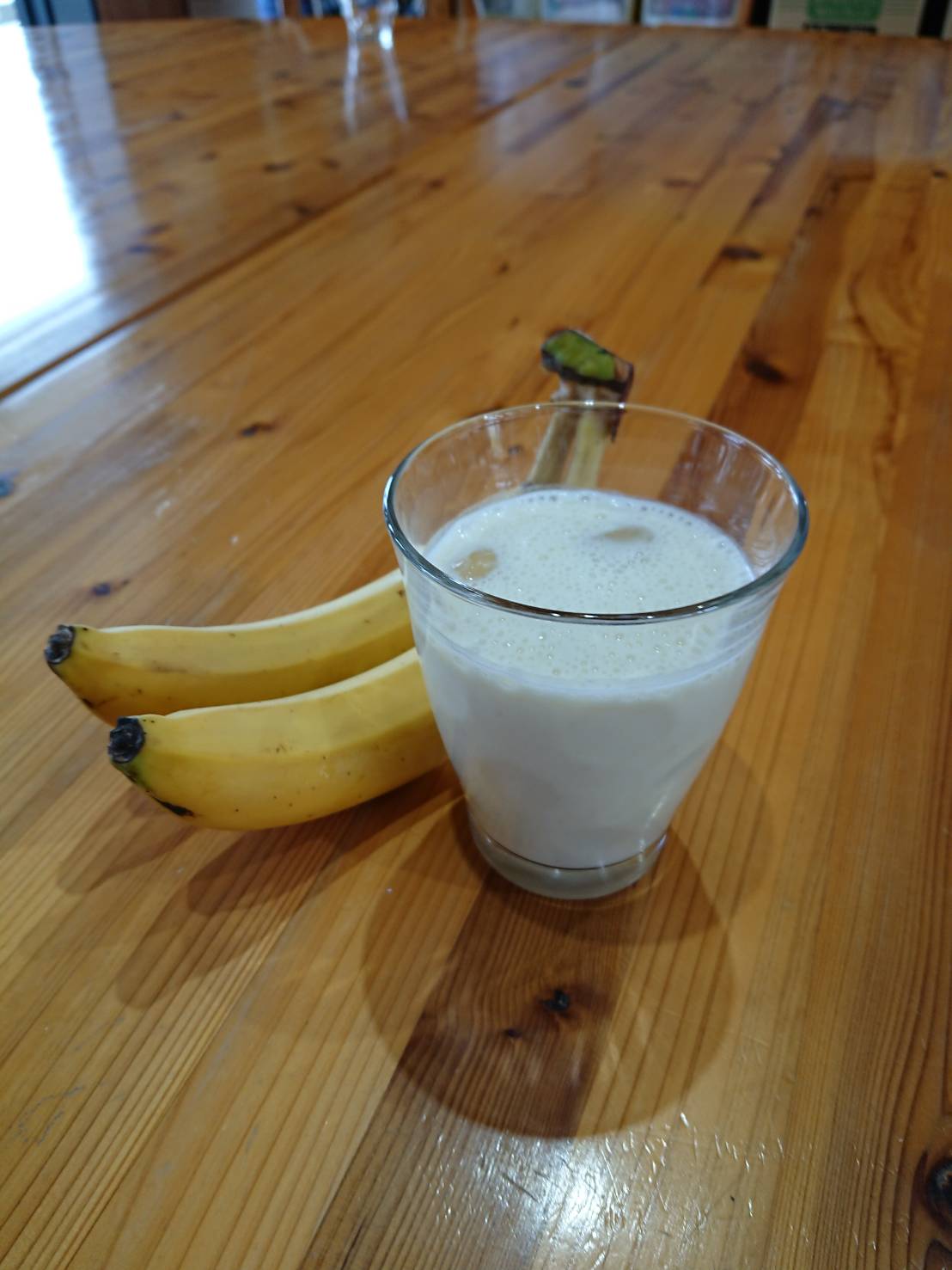バナナジュースは、バニラアイスや練乳、ハチミツなども入れ、まろやかに仕上げました。