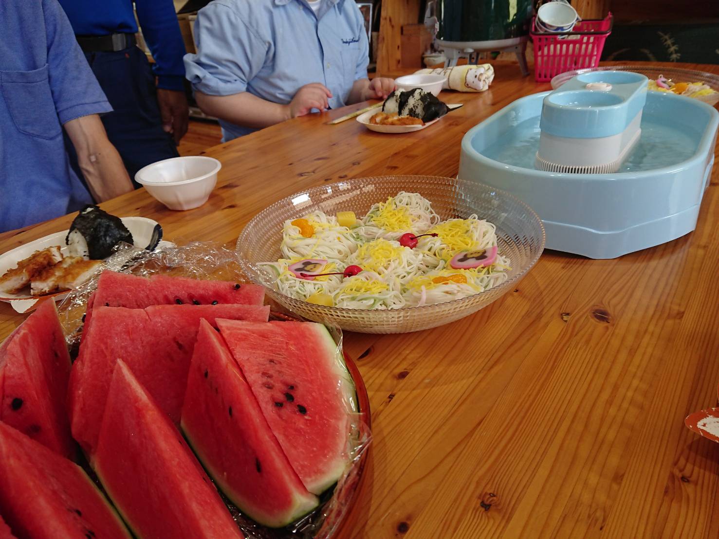 最後は皆でそうめん流しをして、美味しくいただきました!!