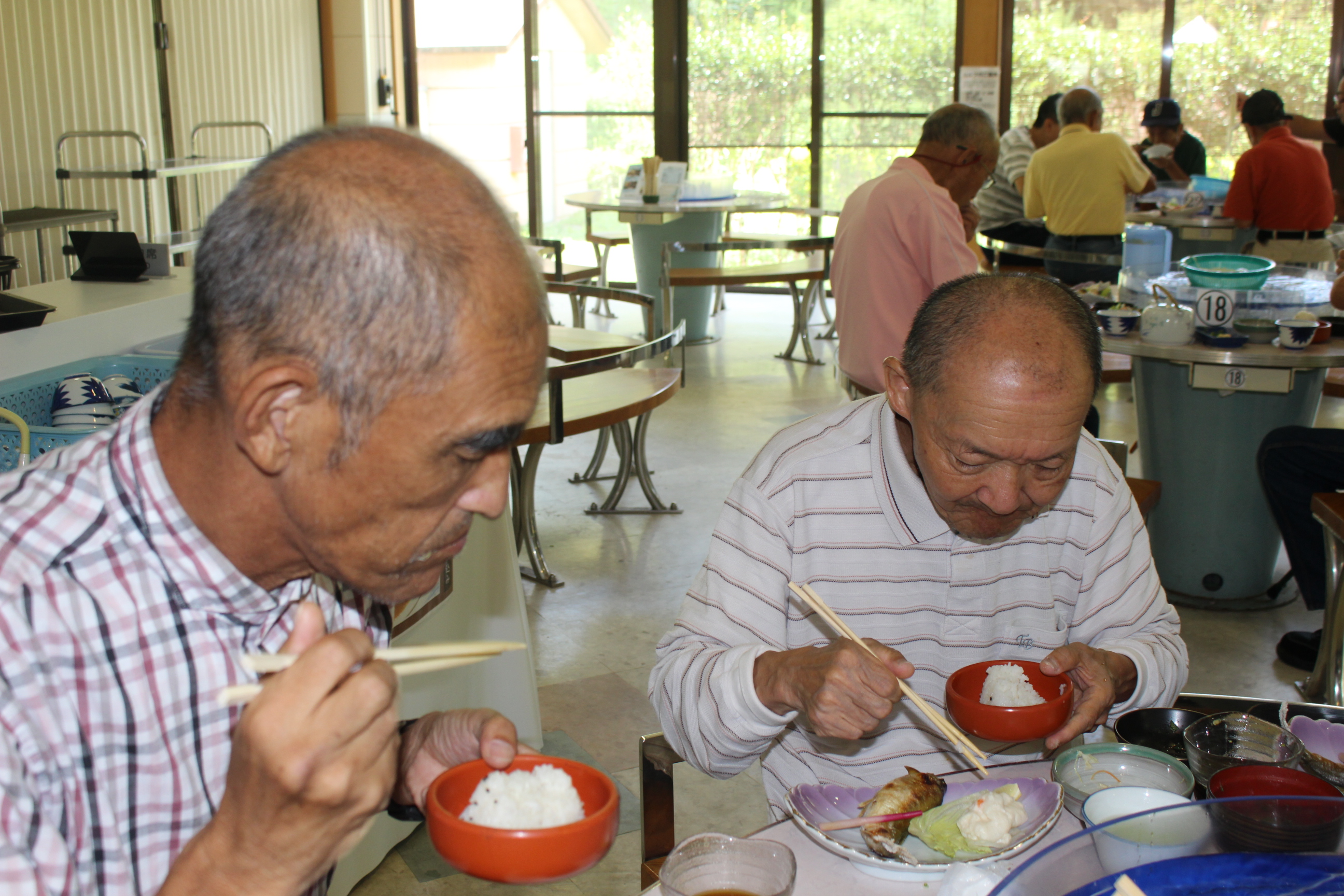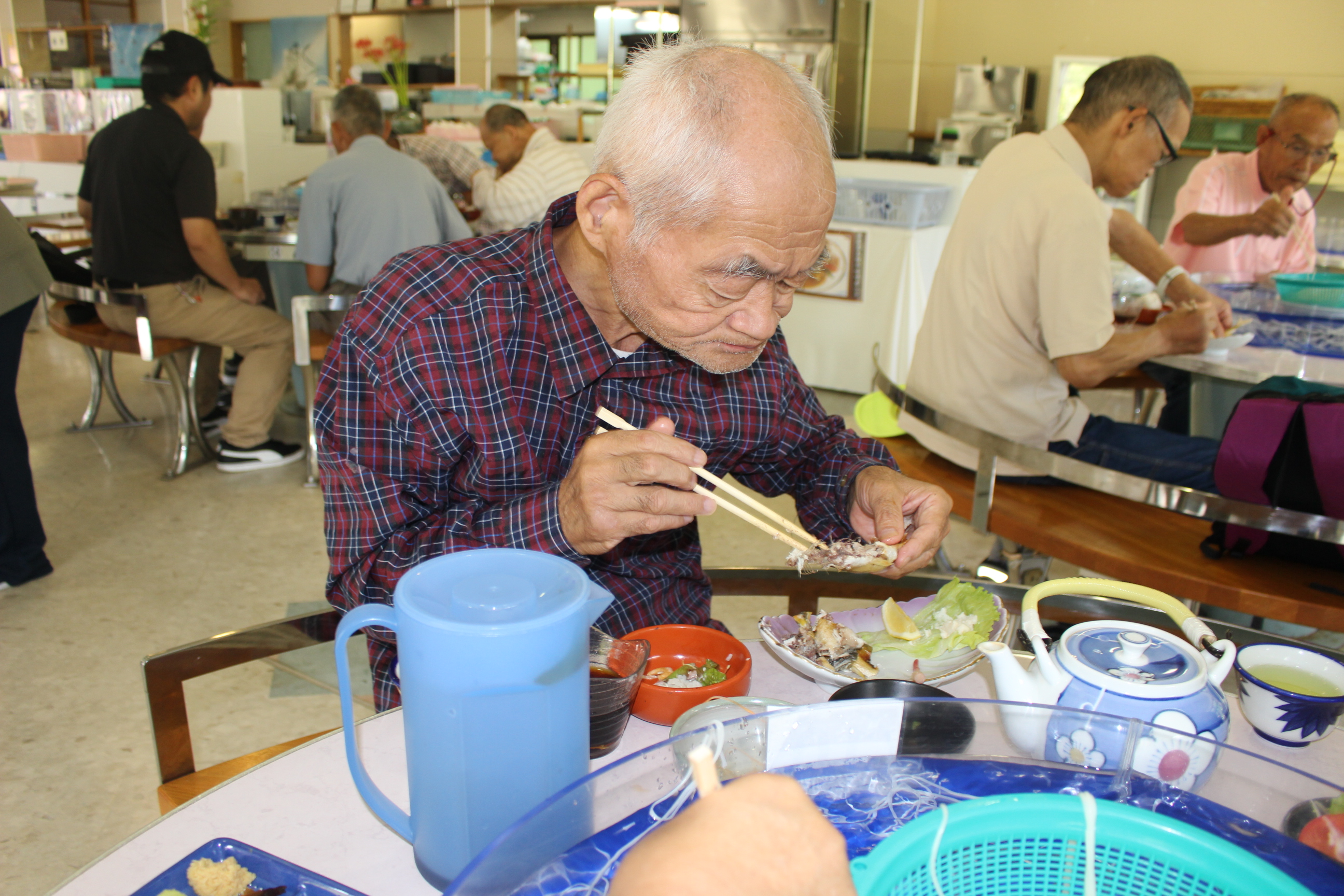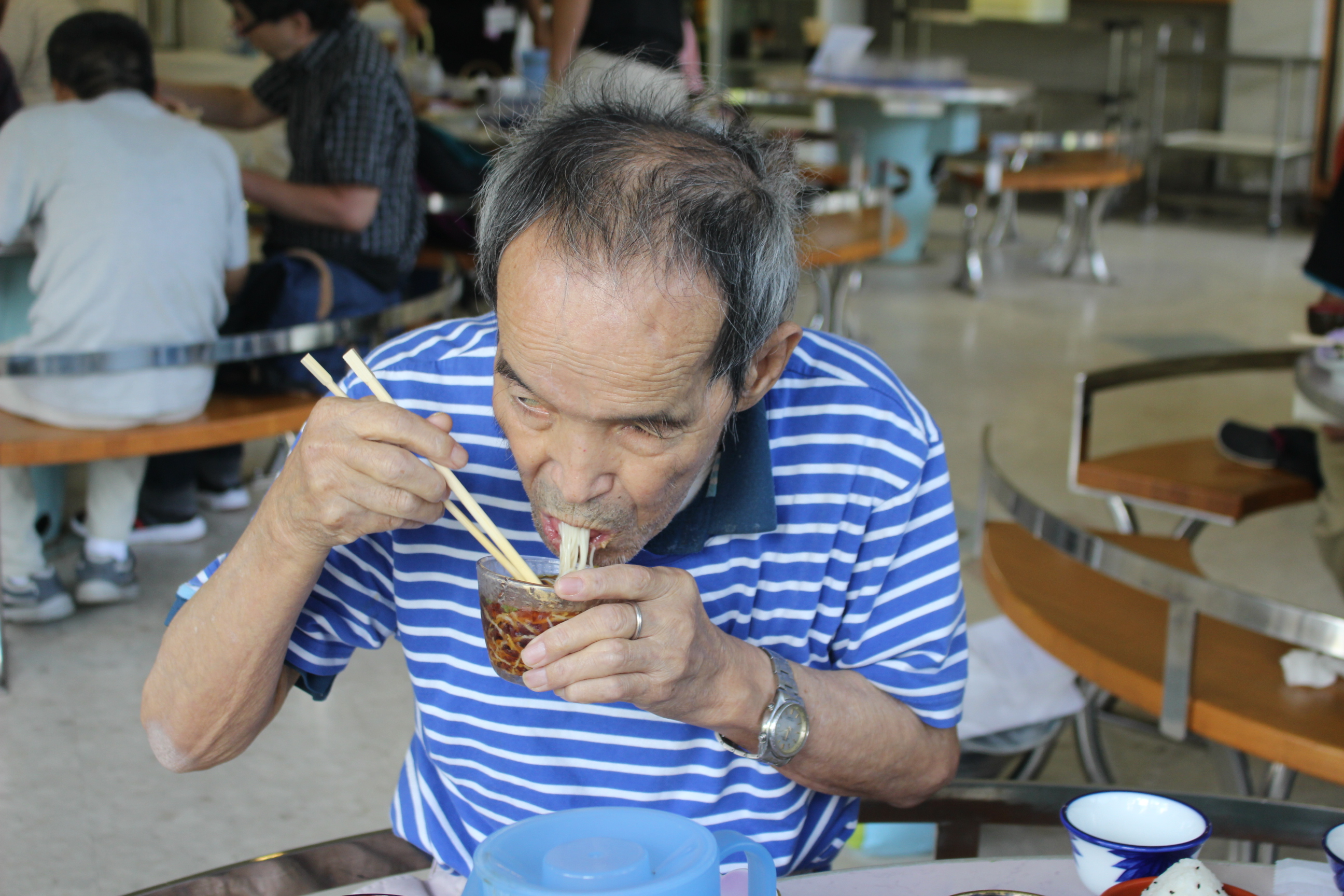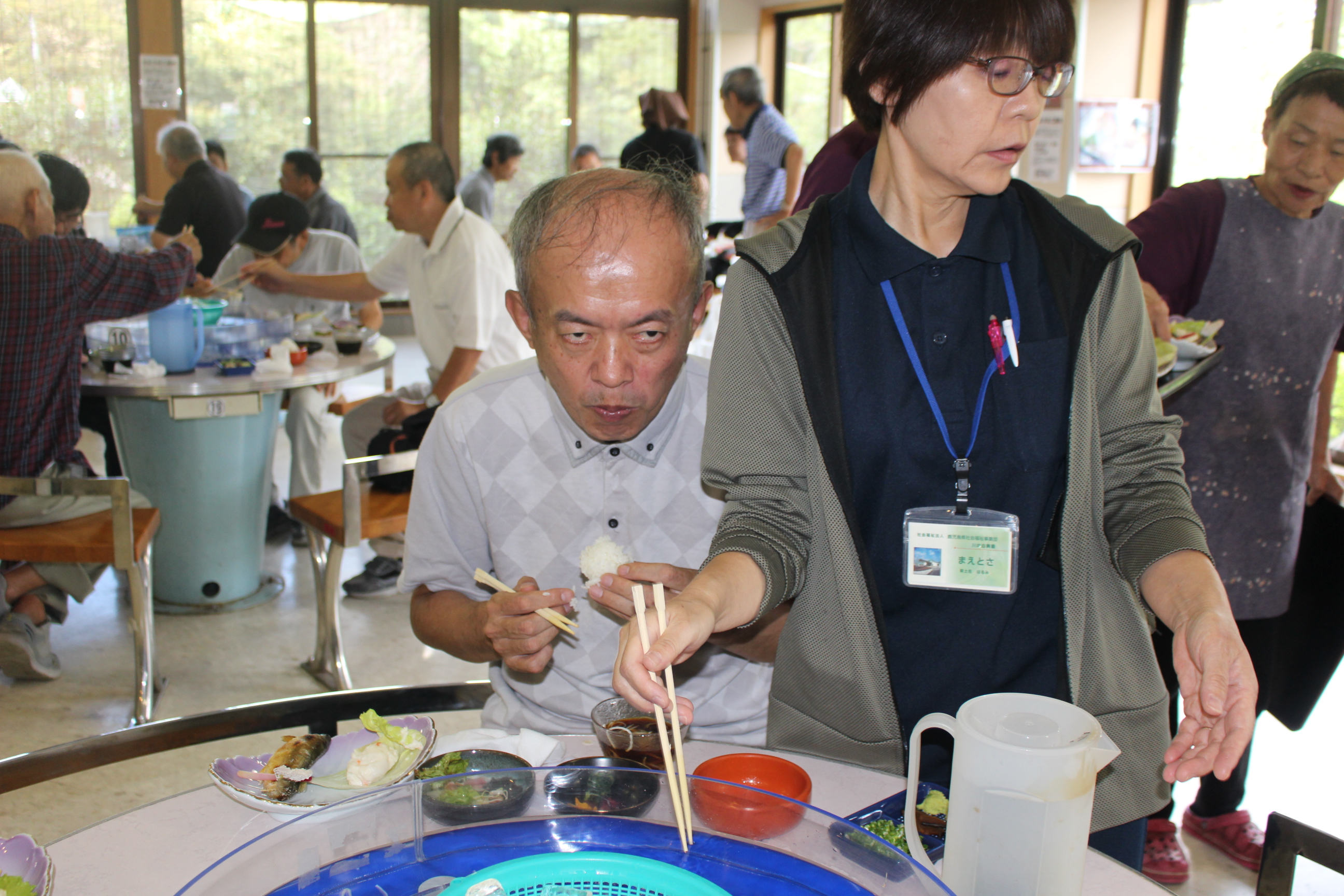 お盆期間の未帰省者外出として,利用者の皆さんから希望として,そうめん流しと温泉を楽しみたいとの意見があり,9月10日に観音滝公園に行ってきました。観音滝公園ではまず,お昼ご飯のそうめん流しを楽しみました。この時期ならではの食事に,皆さん満足そうな表情でした。