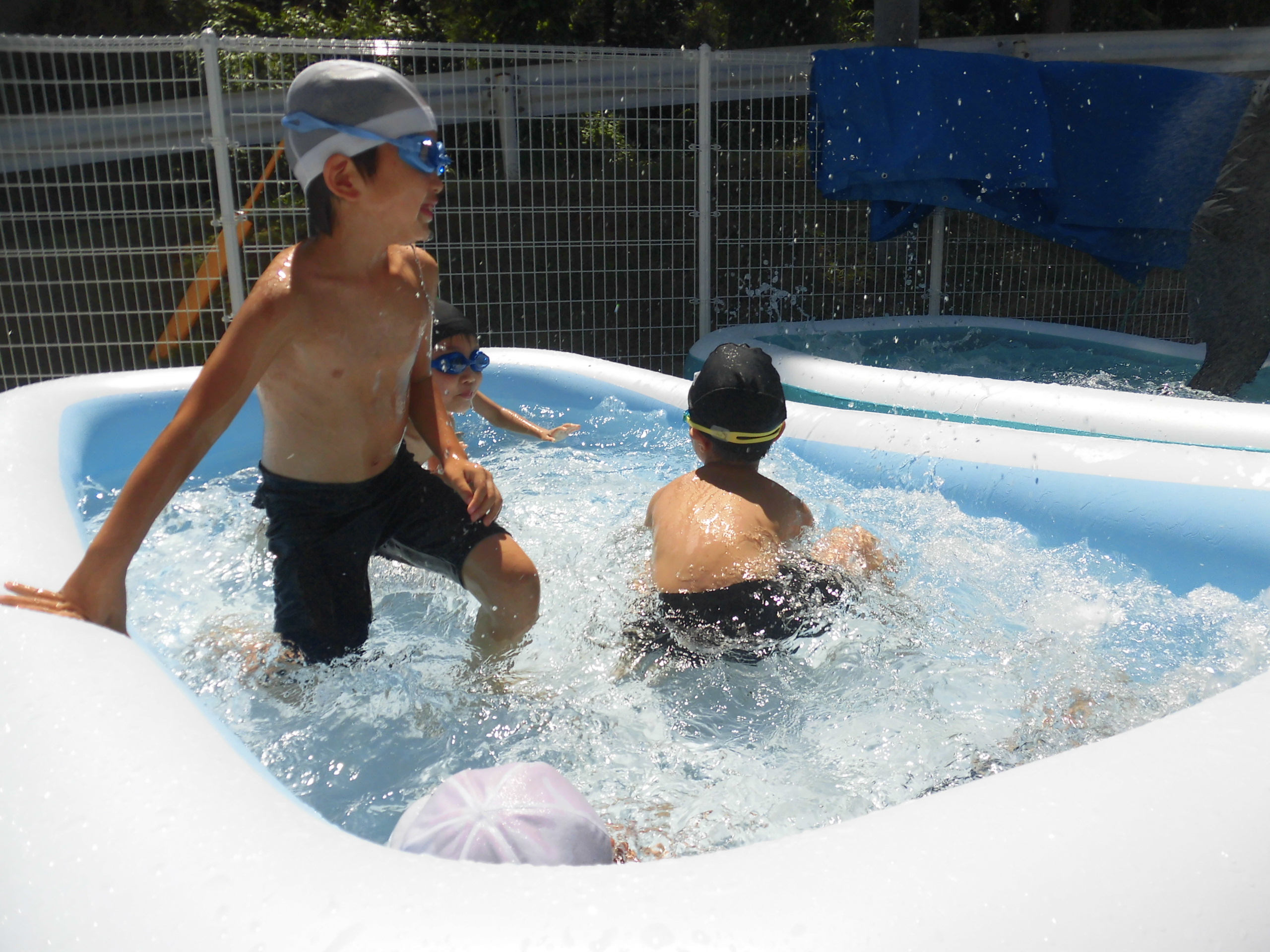 8月2日の午前中に、夏休み恒例の水遊びを園庭にて行いました。