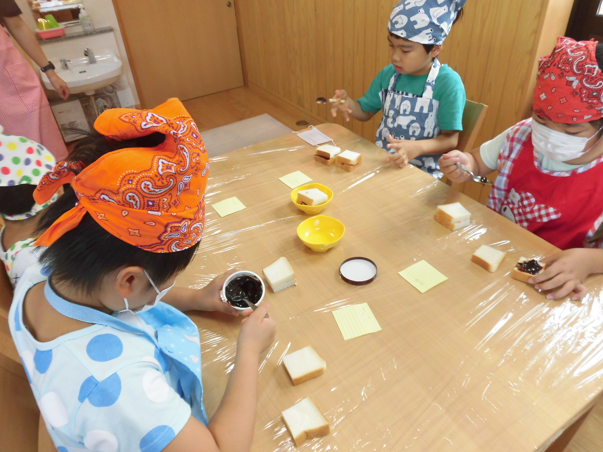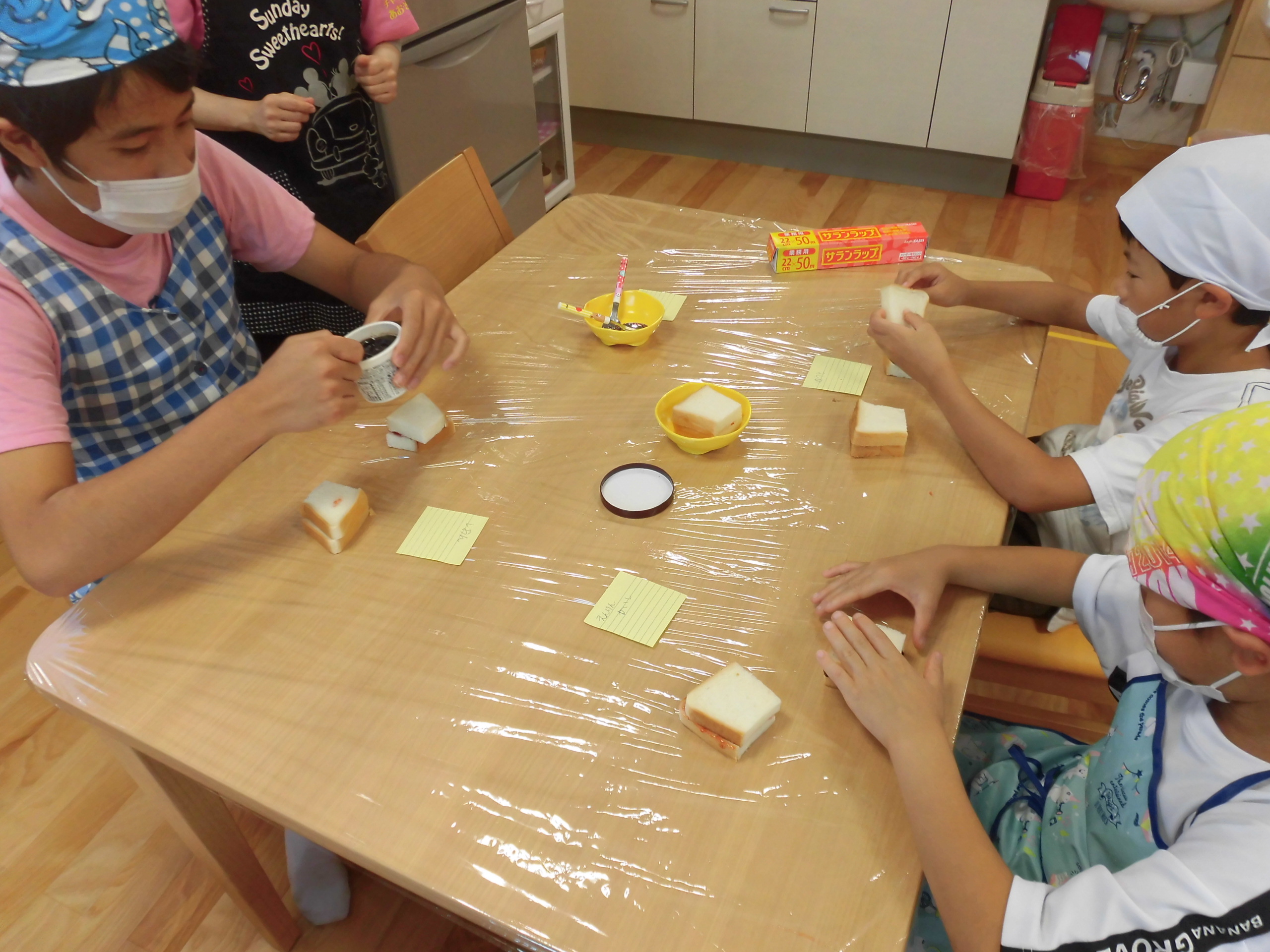 8月5日の午前中に手作りおやつ サンドイッチを作りました。