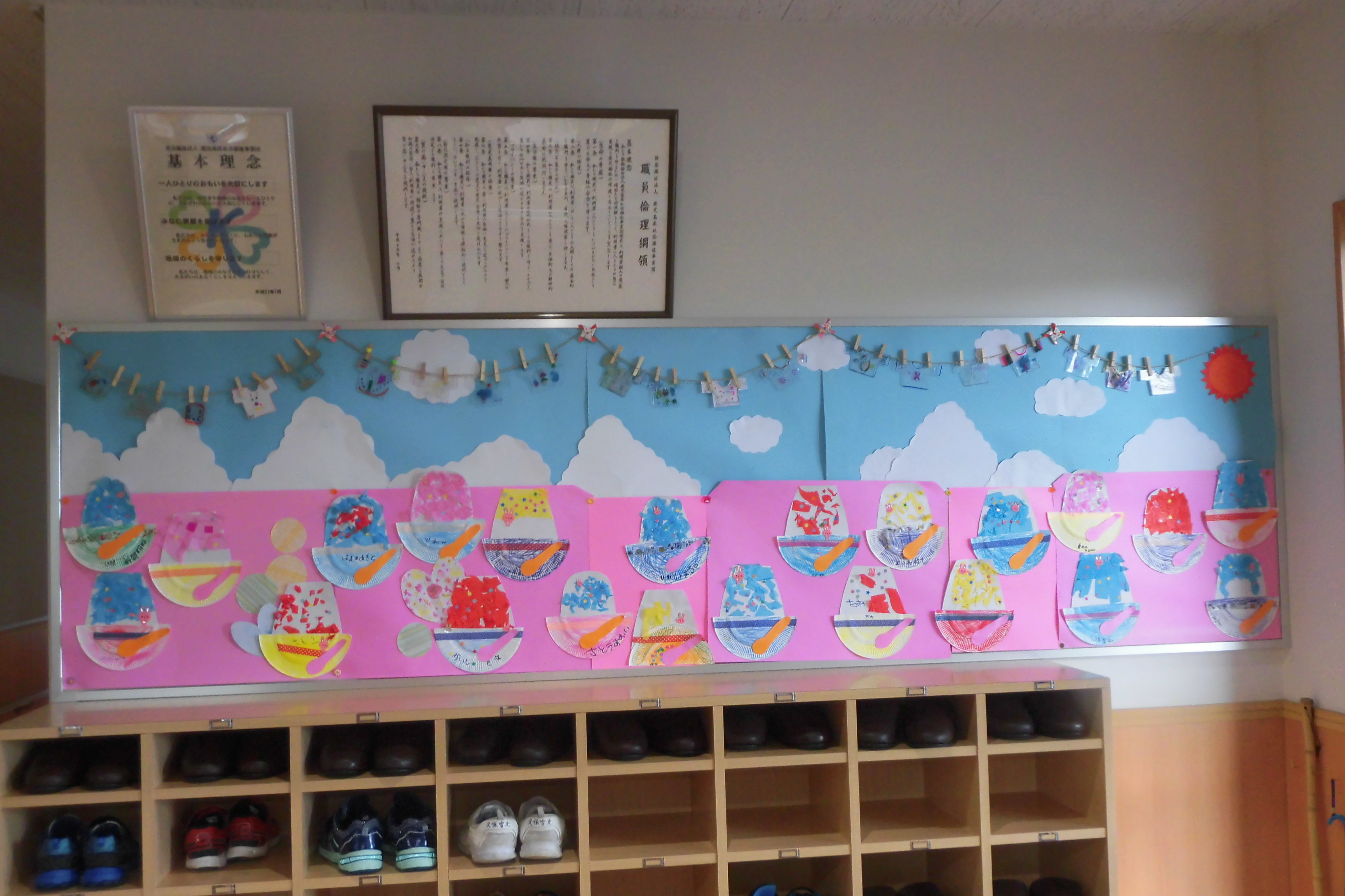 8月3日に、プラ板工作とフラッペの制作を壁面に飾りました。