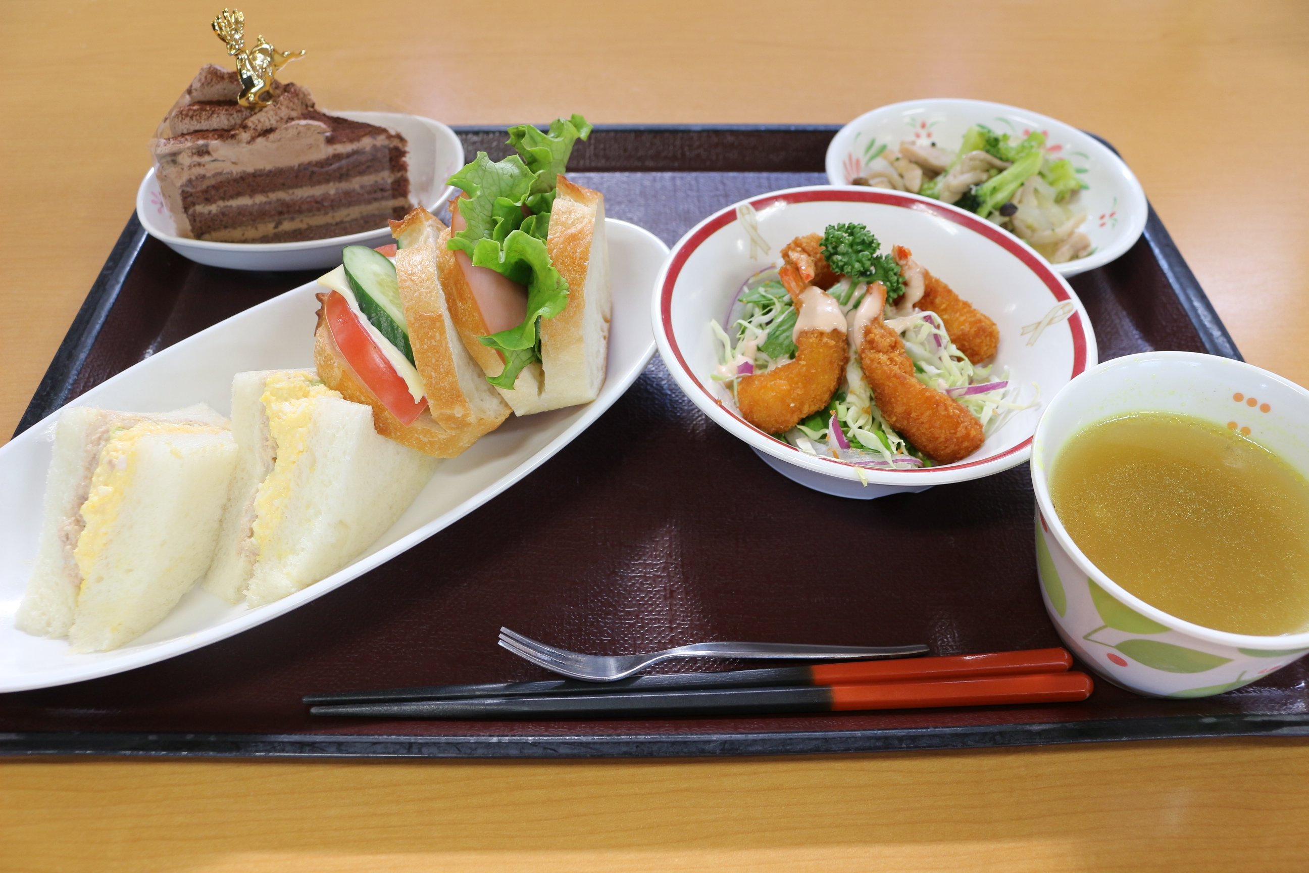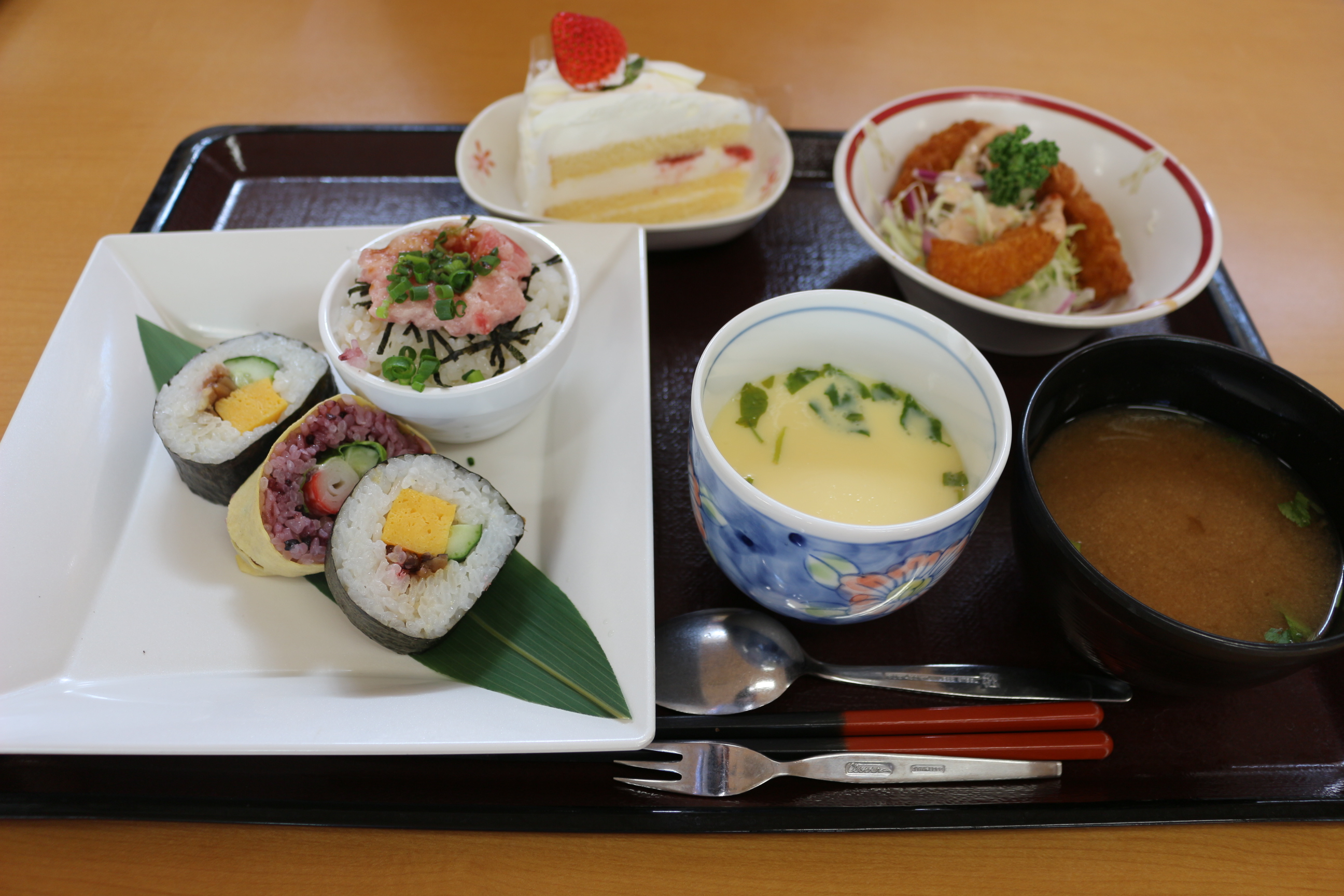 (献立)ミニ鉄火丼、巻き寿司        (献立)バケットサンド、ミックスサンド
