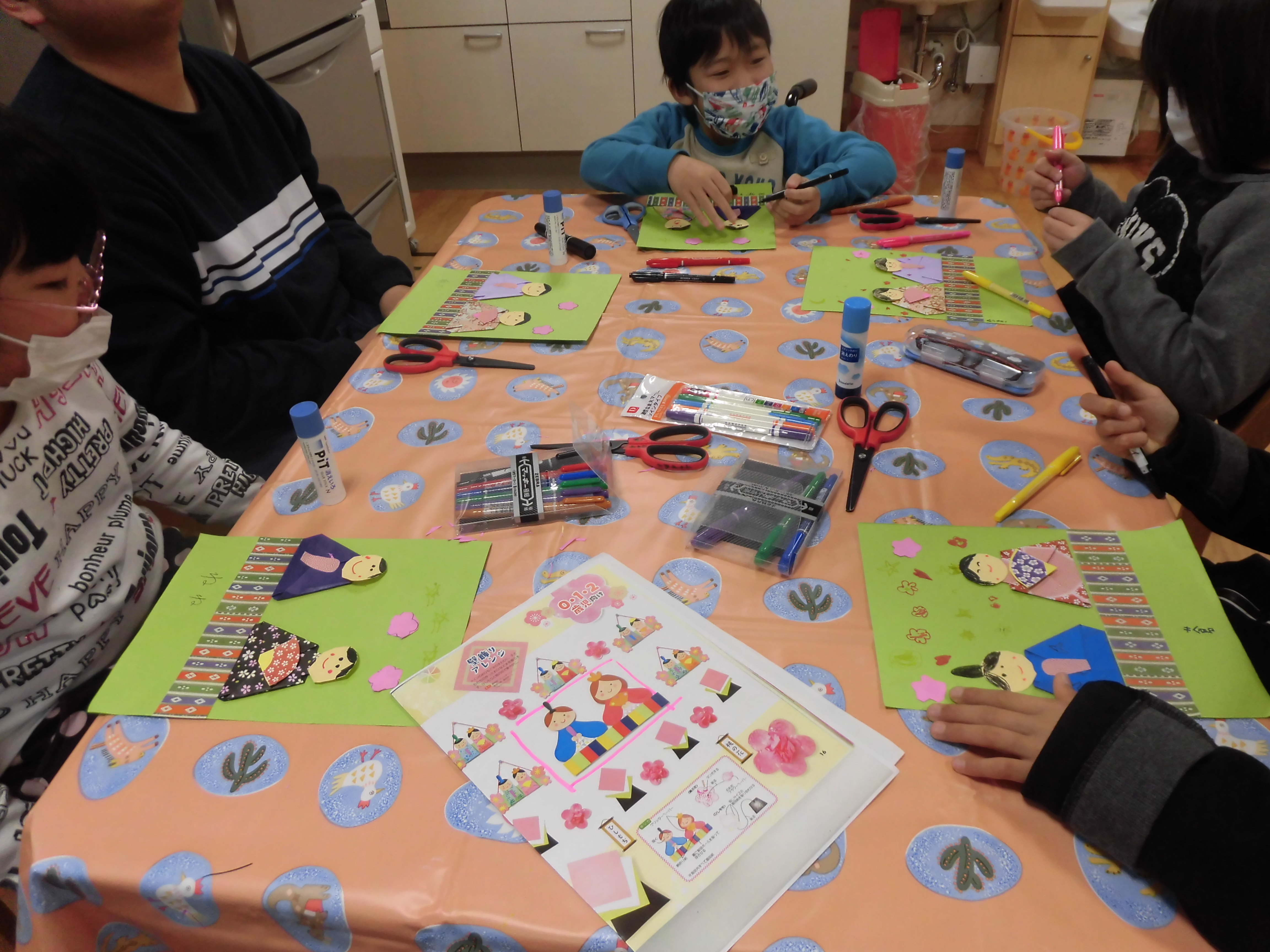 チャイルドクラブあおぞらでは、2月29日にひなまつり製作を行いました。