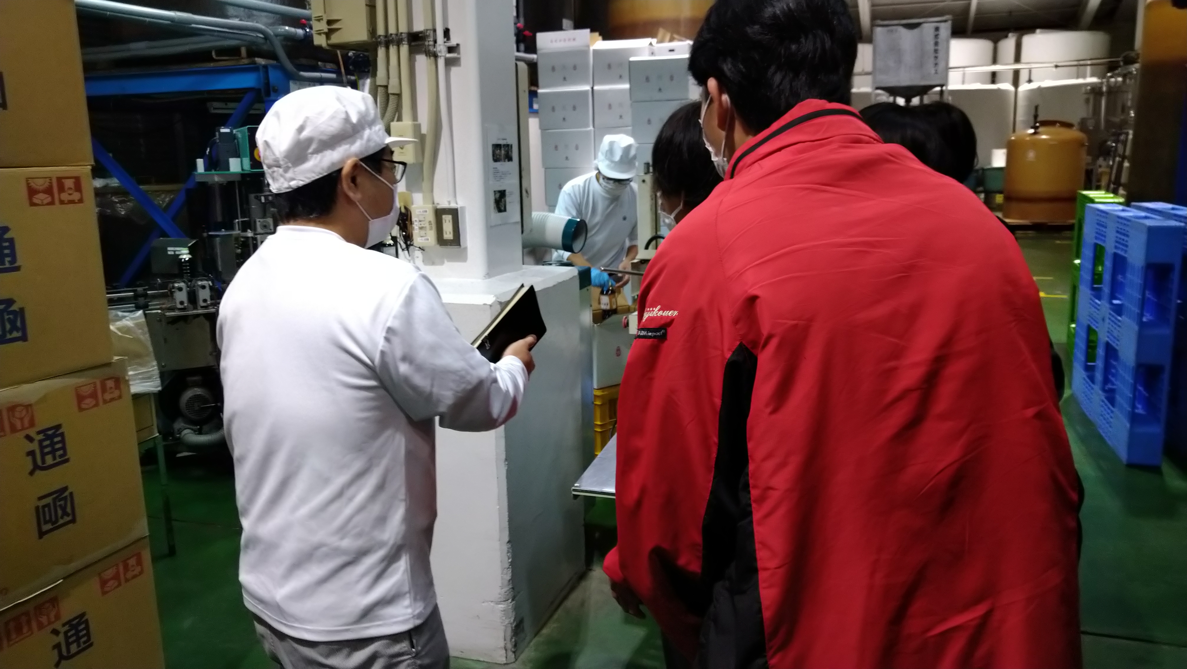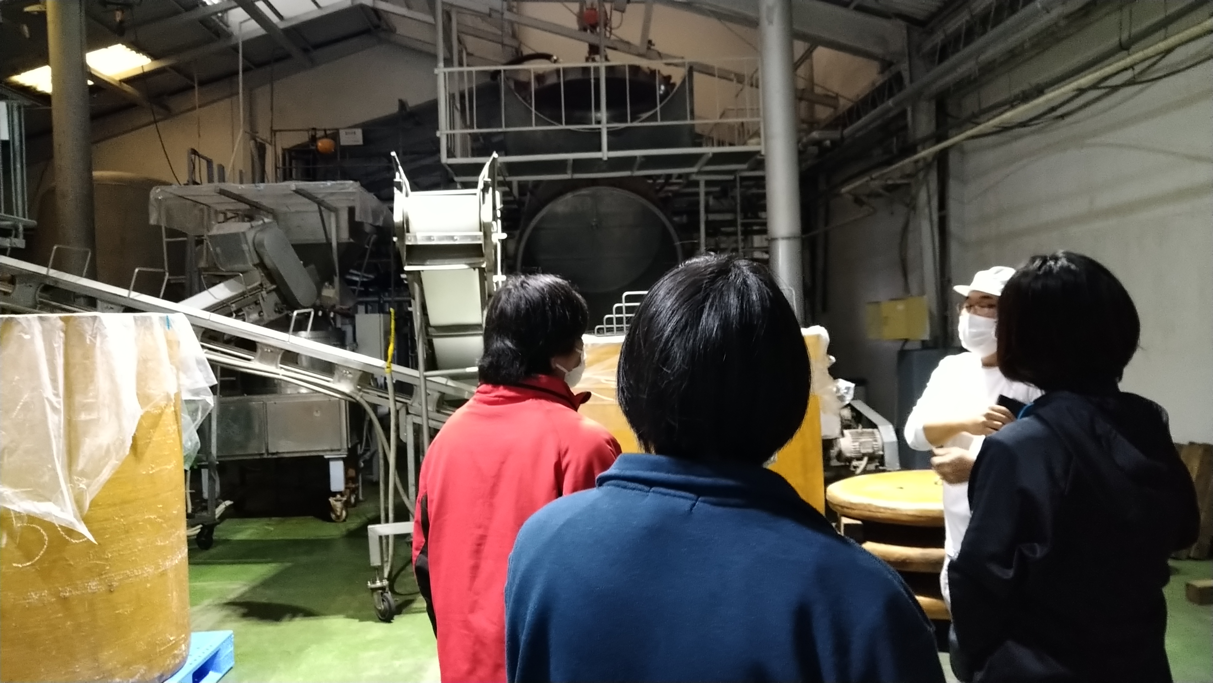 上記の写真は しょうゆ・みその製造工場を見学させていただいた時のものです。実際の作業現場を見て、説明を受けることで、利用者の皆さんも求人票を見るだけではわからない職場の状況をより明確にとらえることができ、就労に対して具体的に考える機会となりました。
