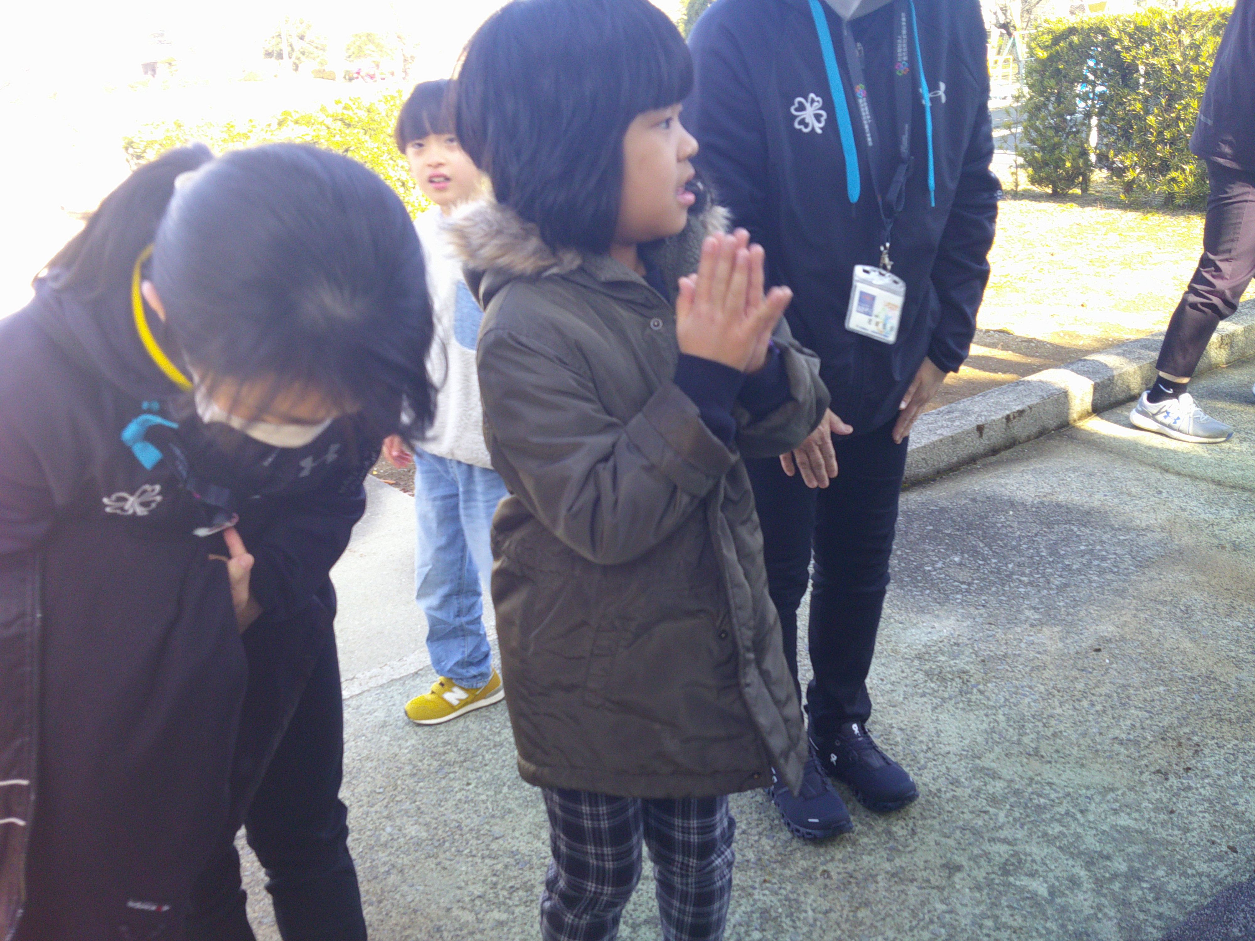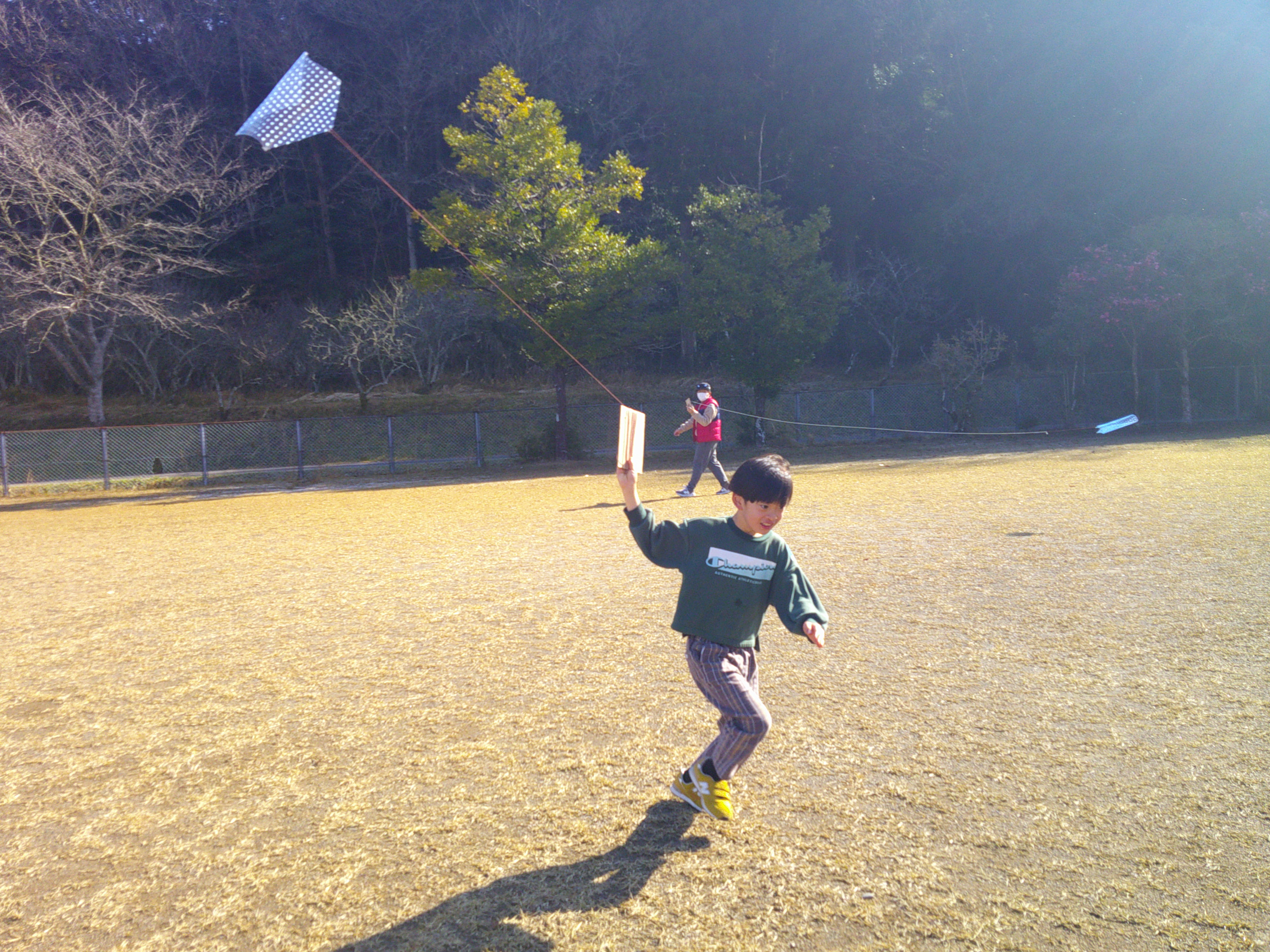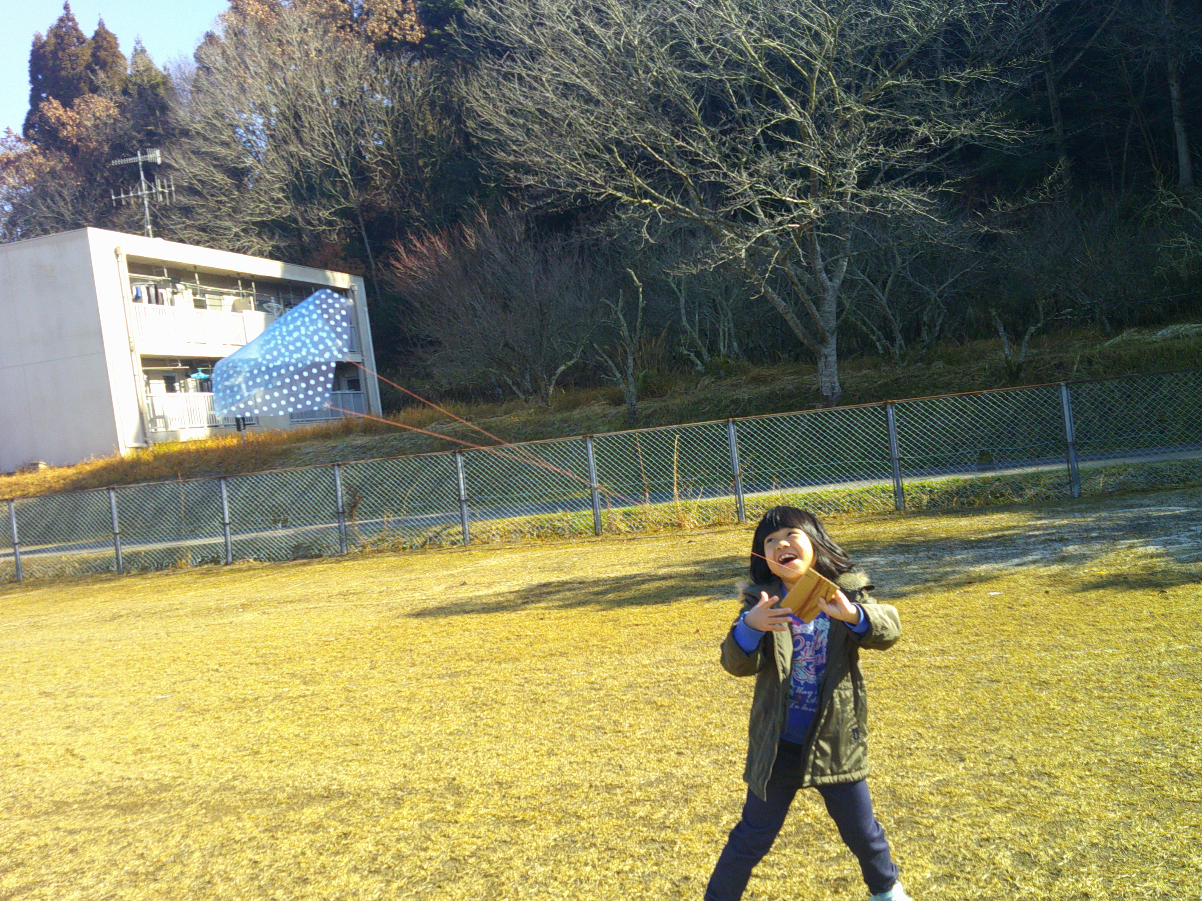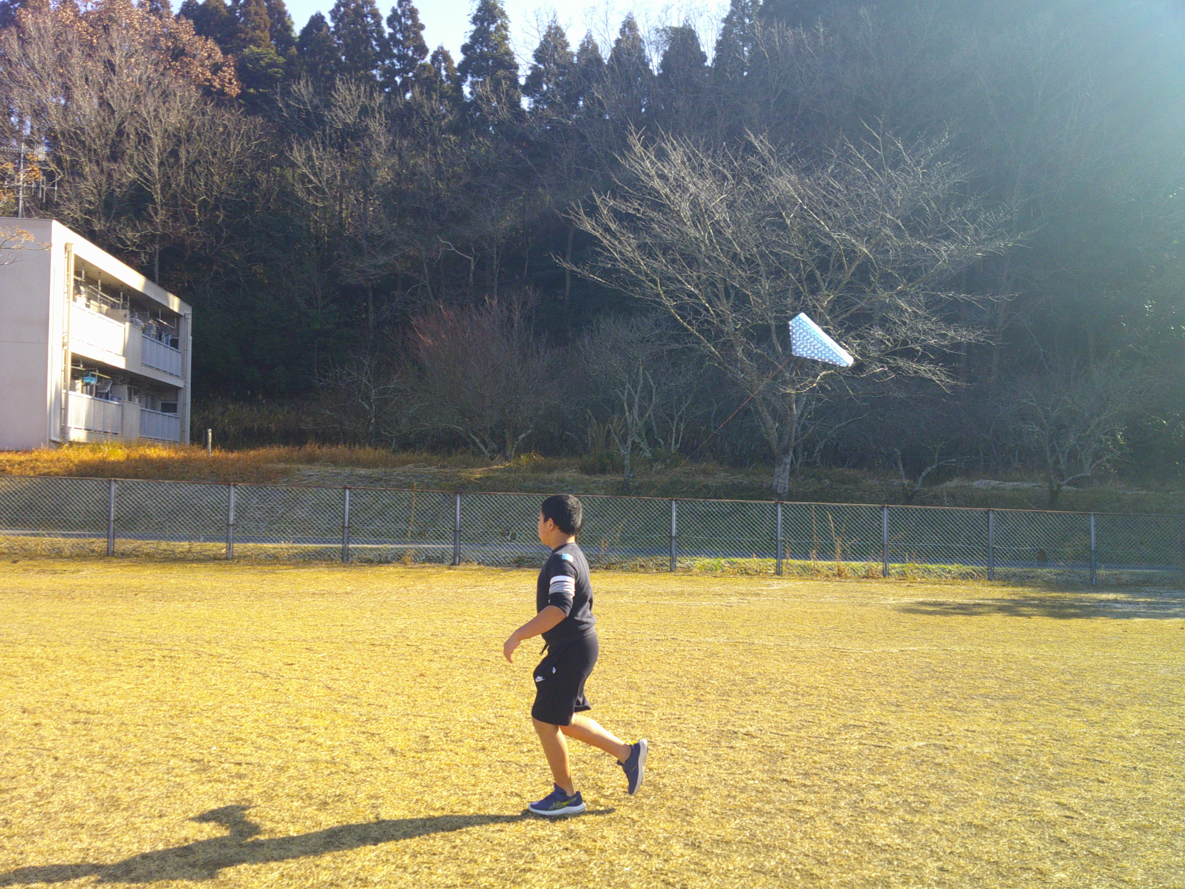 冬の寒い日でしたが「走ったら暑くなった。」「グラウンドの端まで走って揚げるね。」と