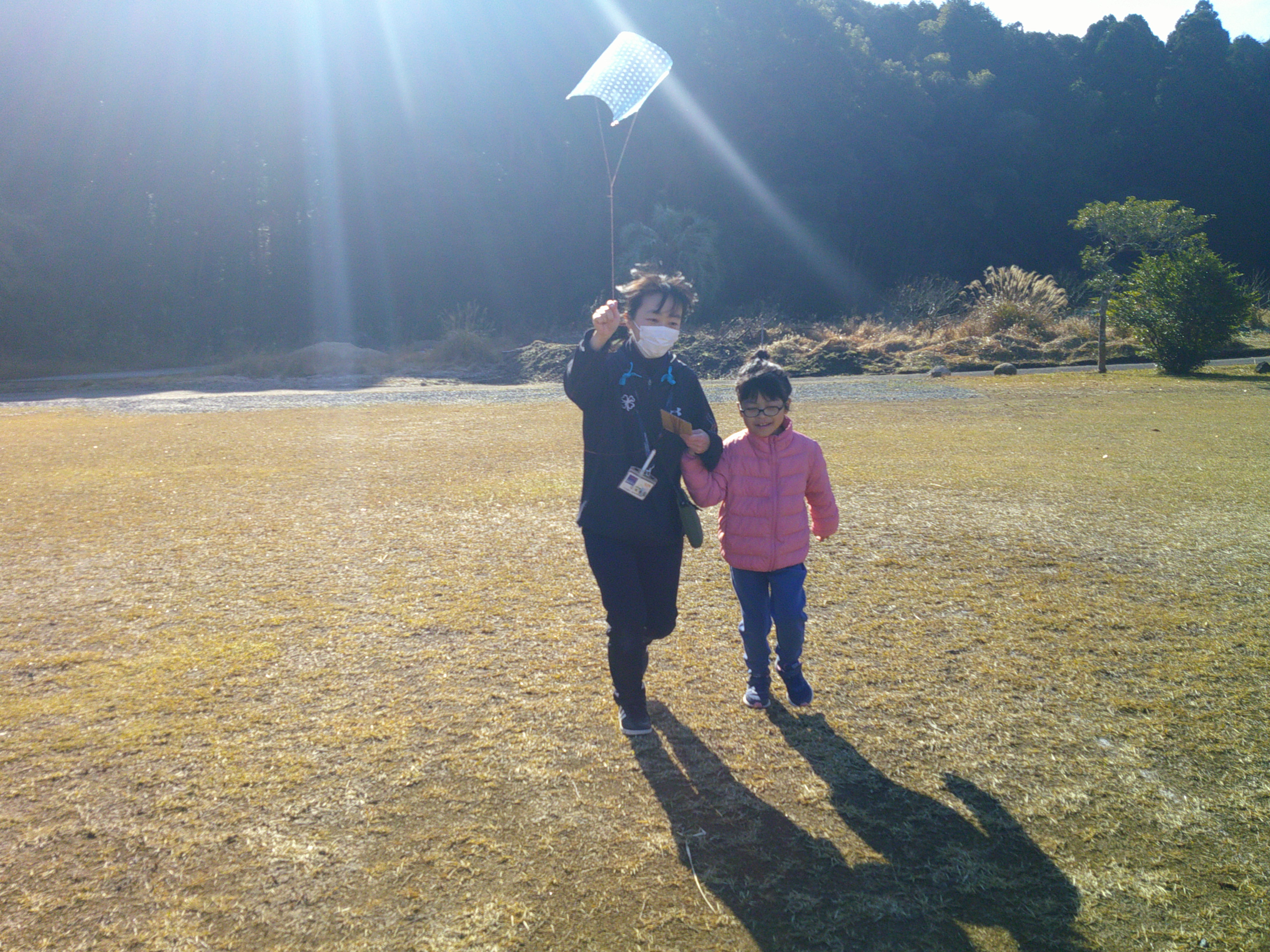 上手に風に乗せて凧を揚げたり、お友達と誰が高く飛ばすことができるか