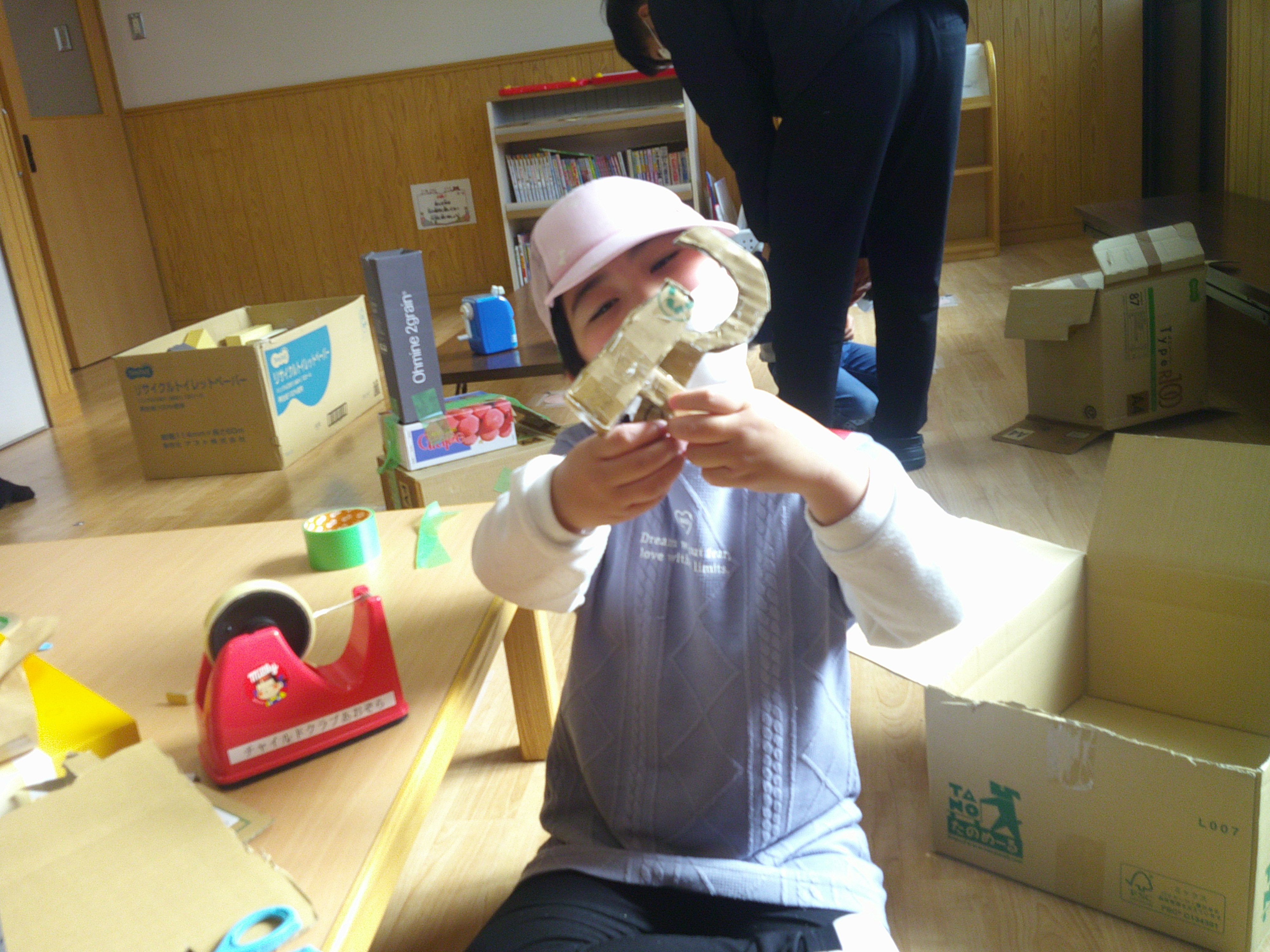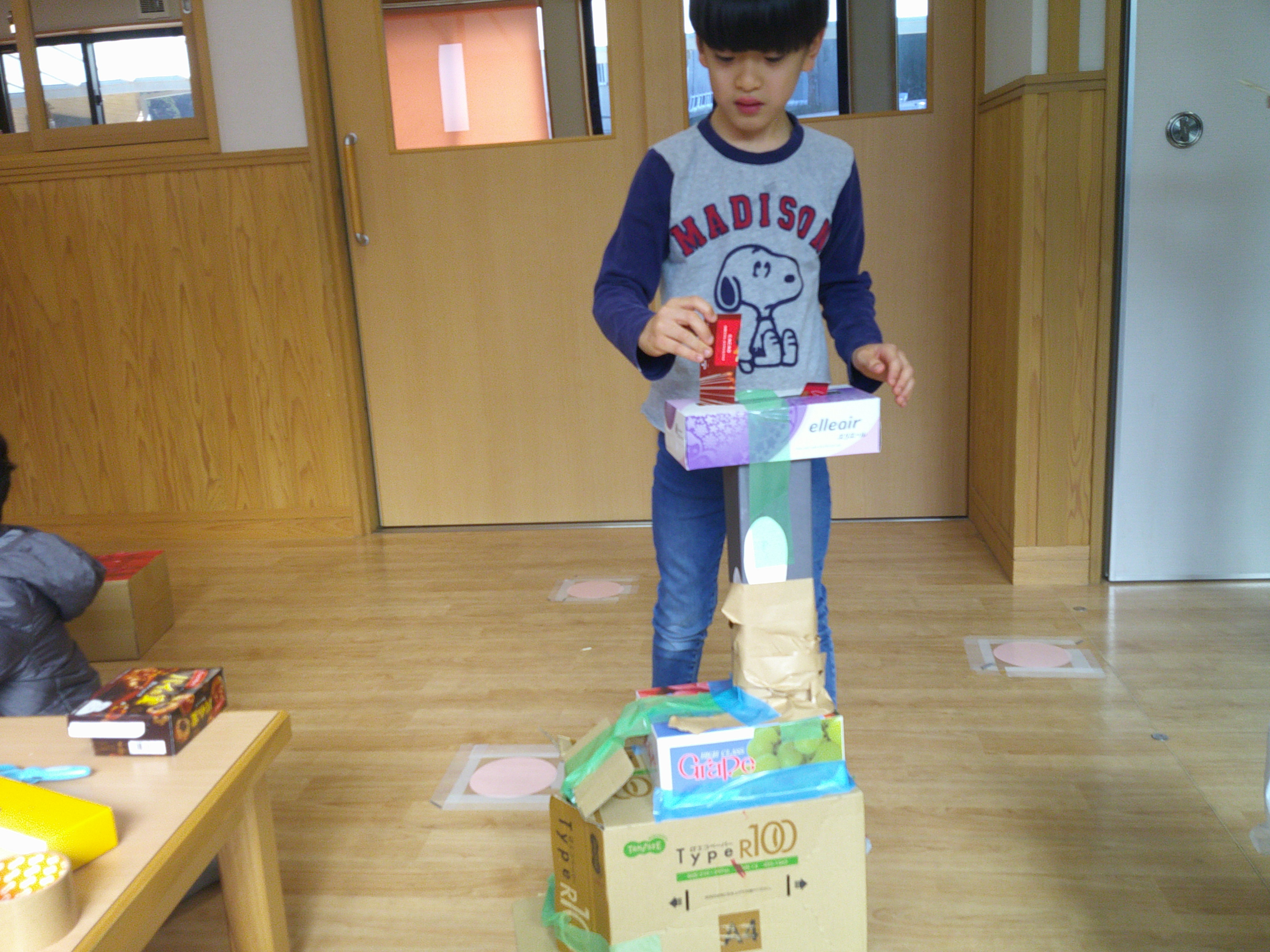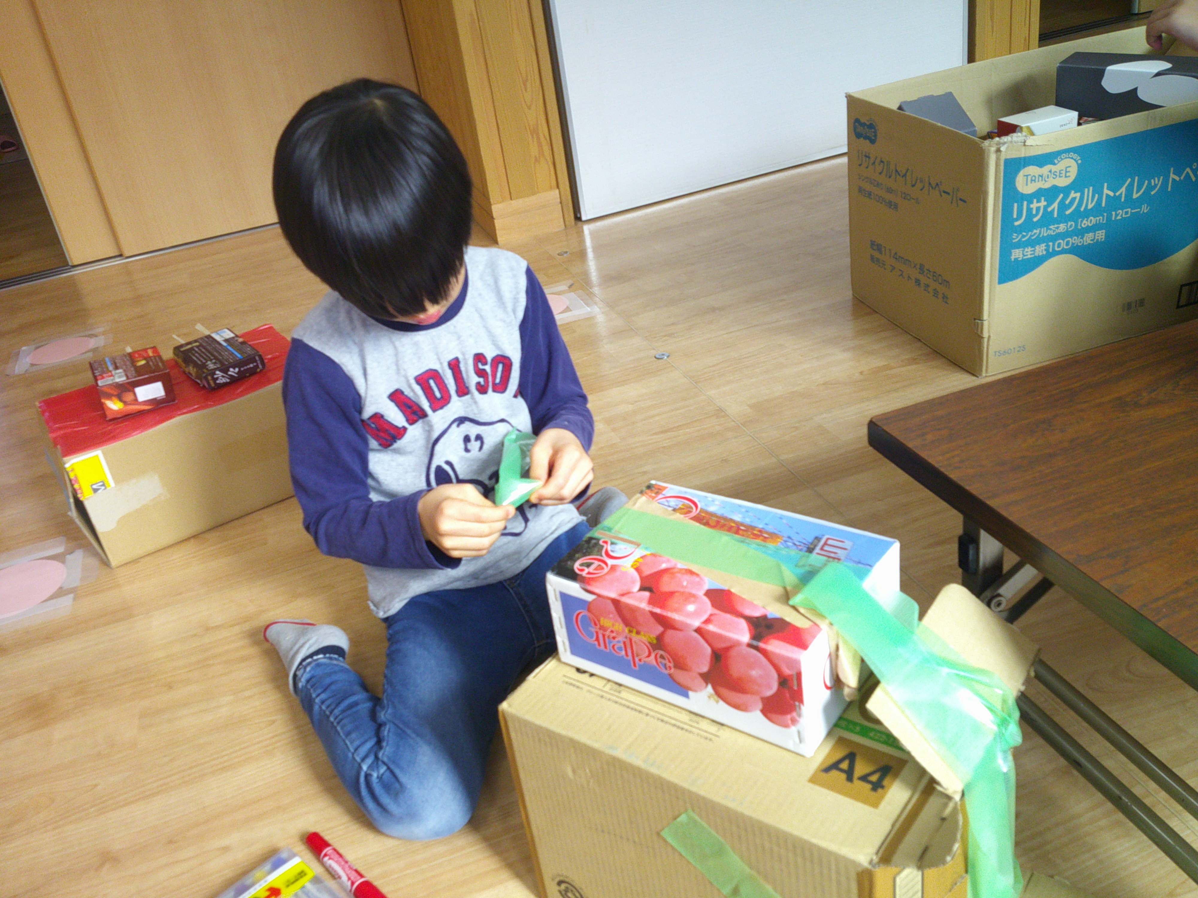 好きな大きさの段ボールやお菓子の空き箱を選び、各々好きな作品を作っていました。