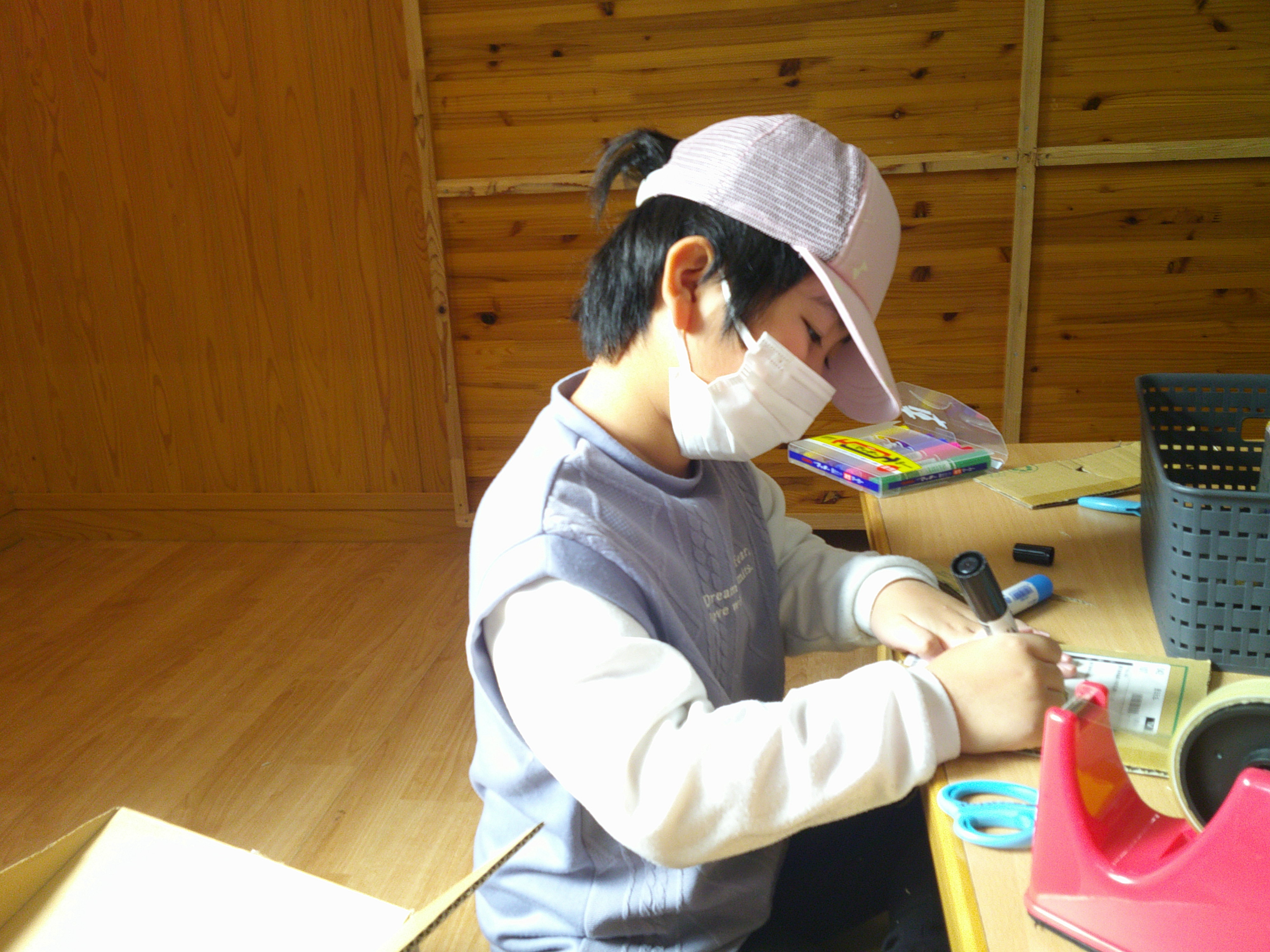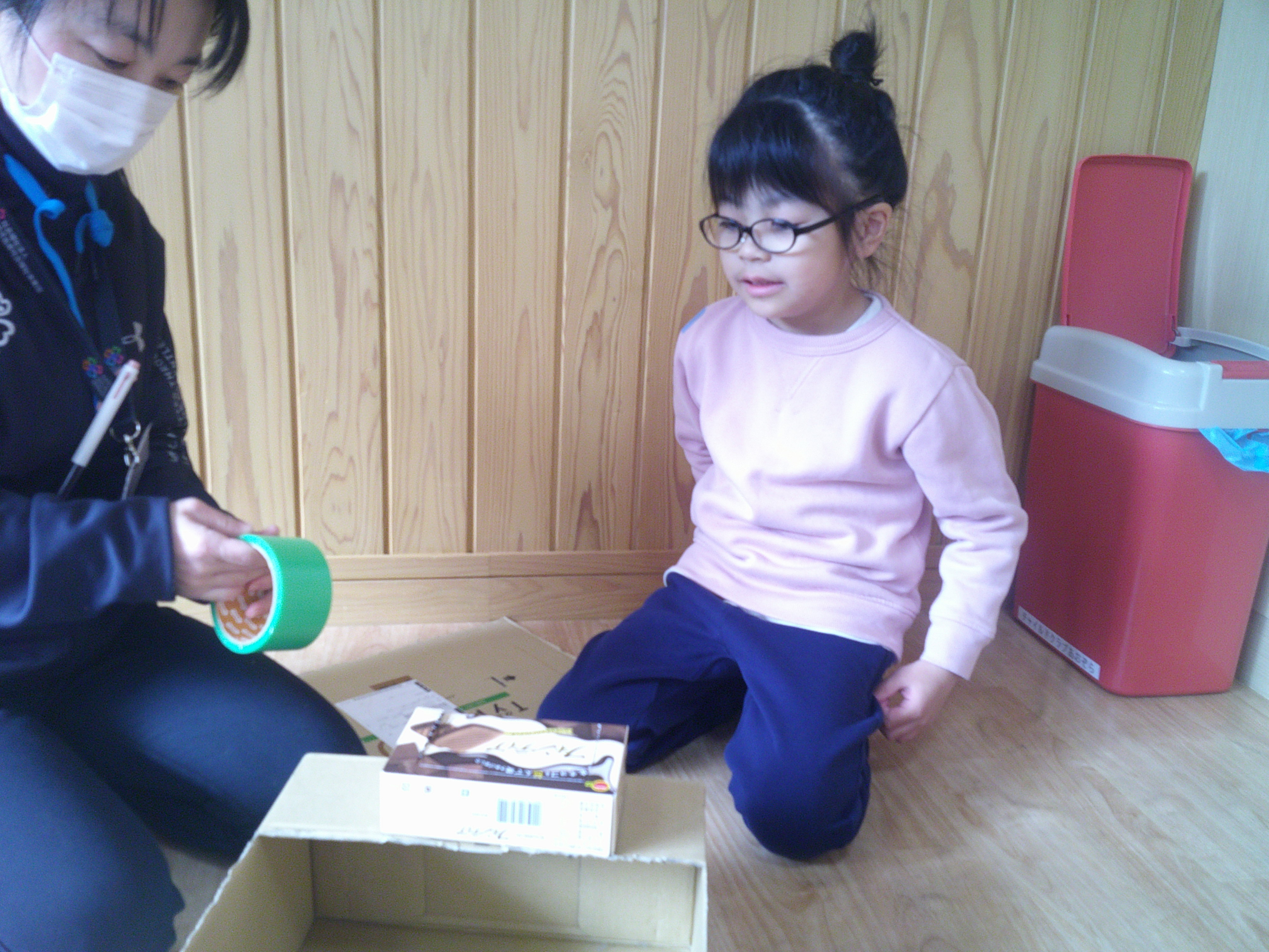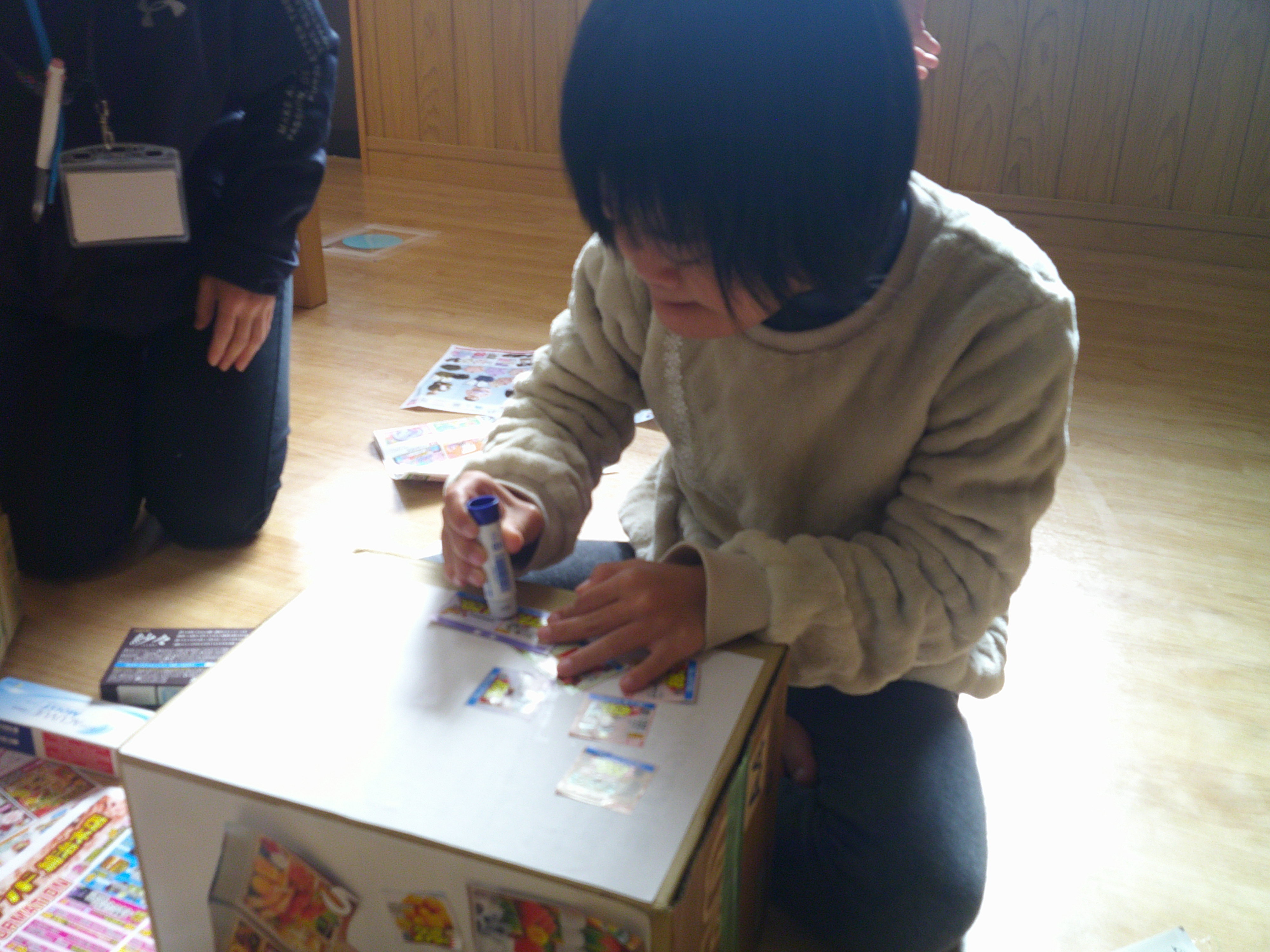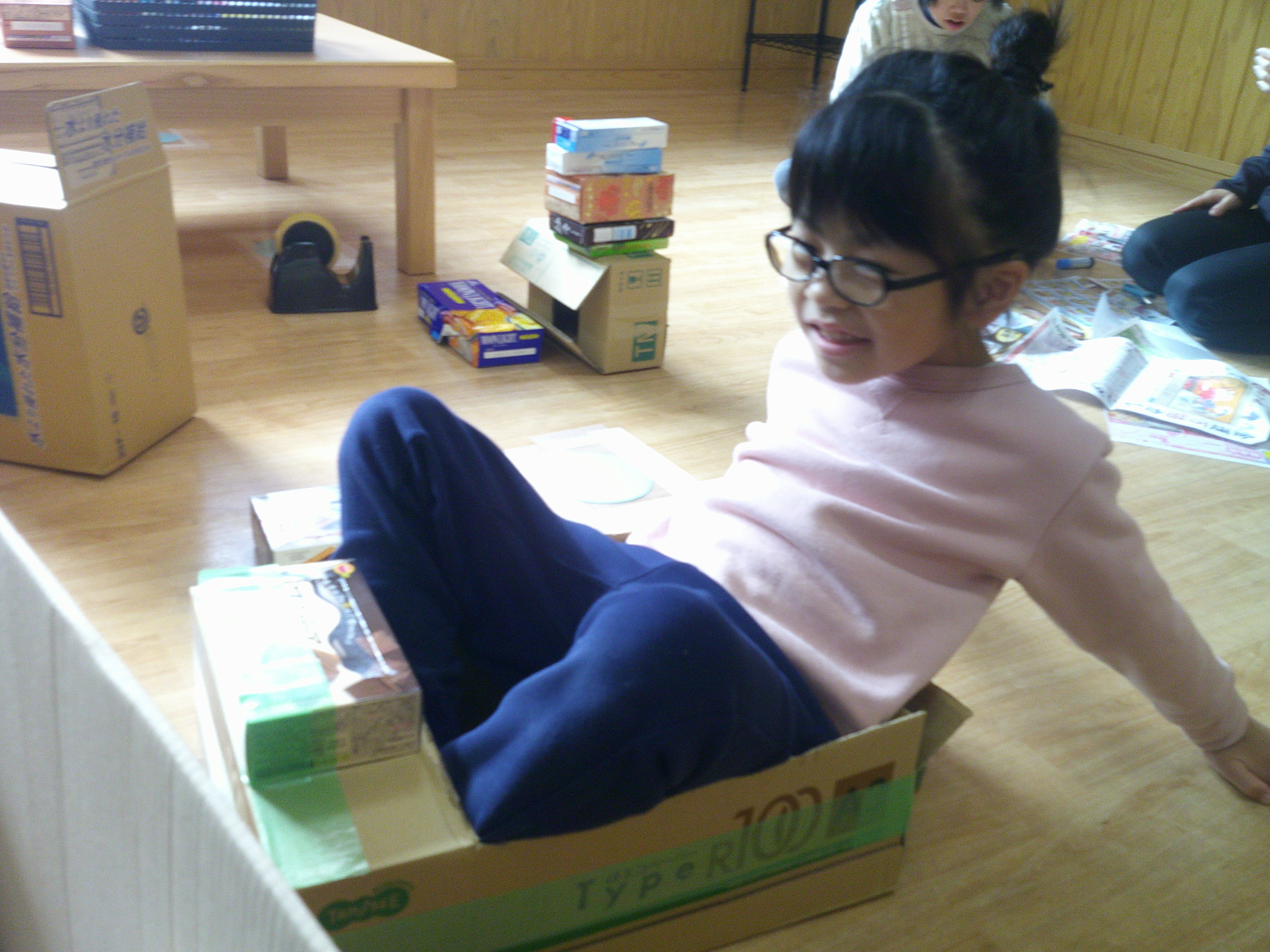 好きな大きさの段ボールやお菓子の空き箱を選び、各々好きな作品を作っていました。