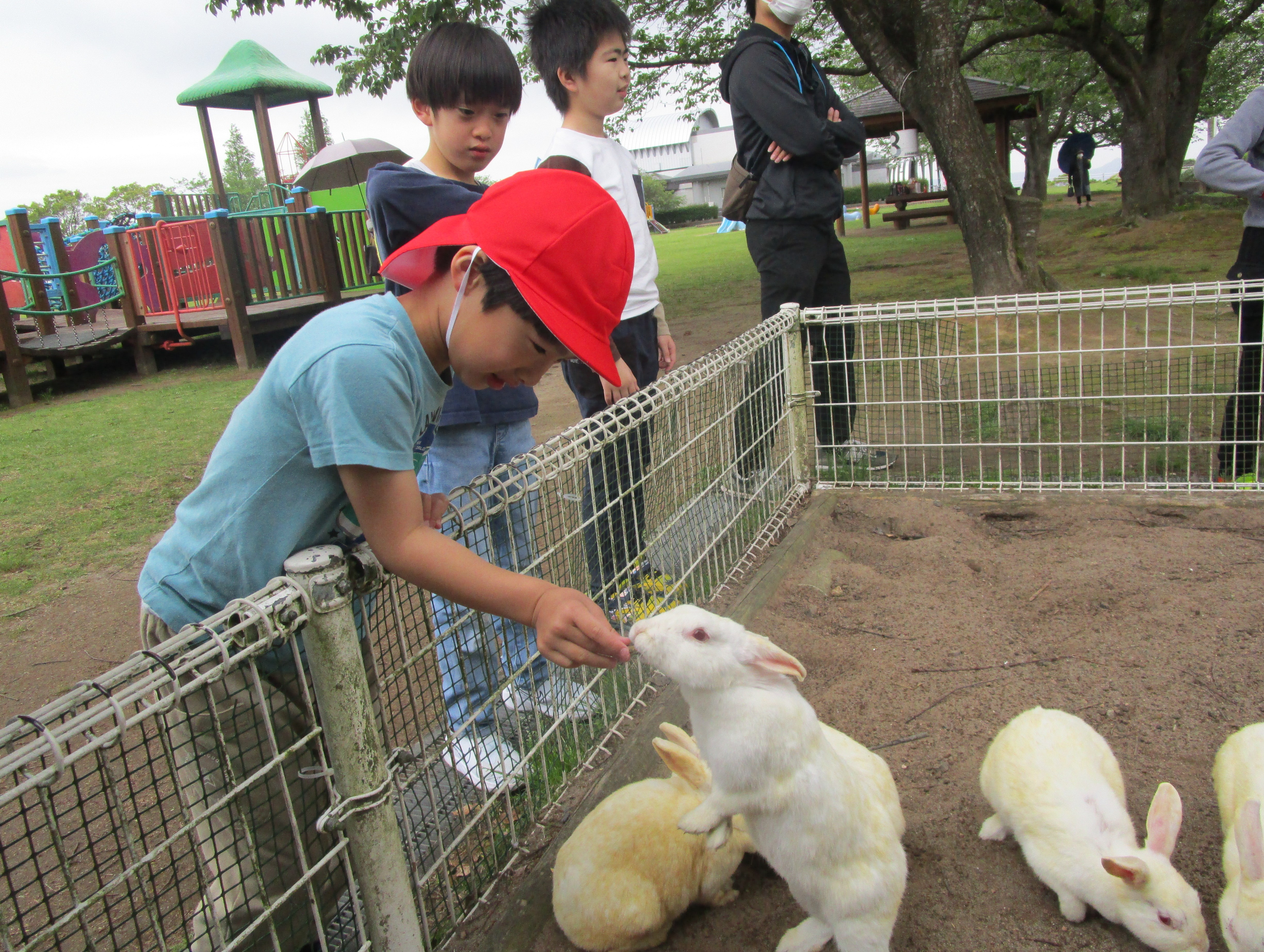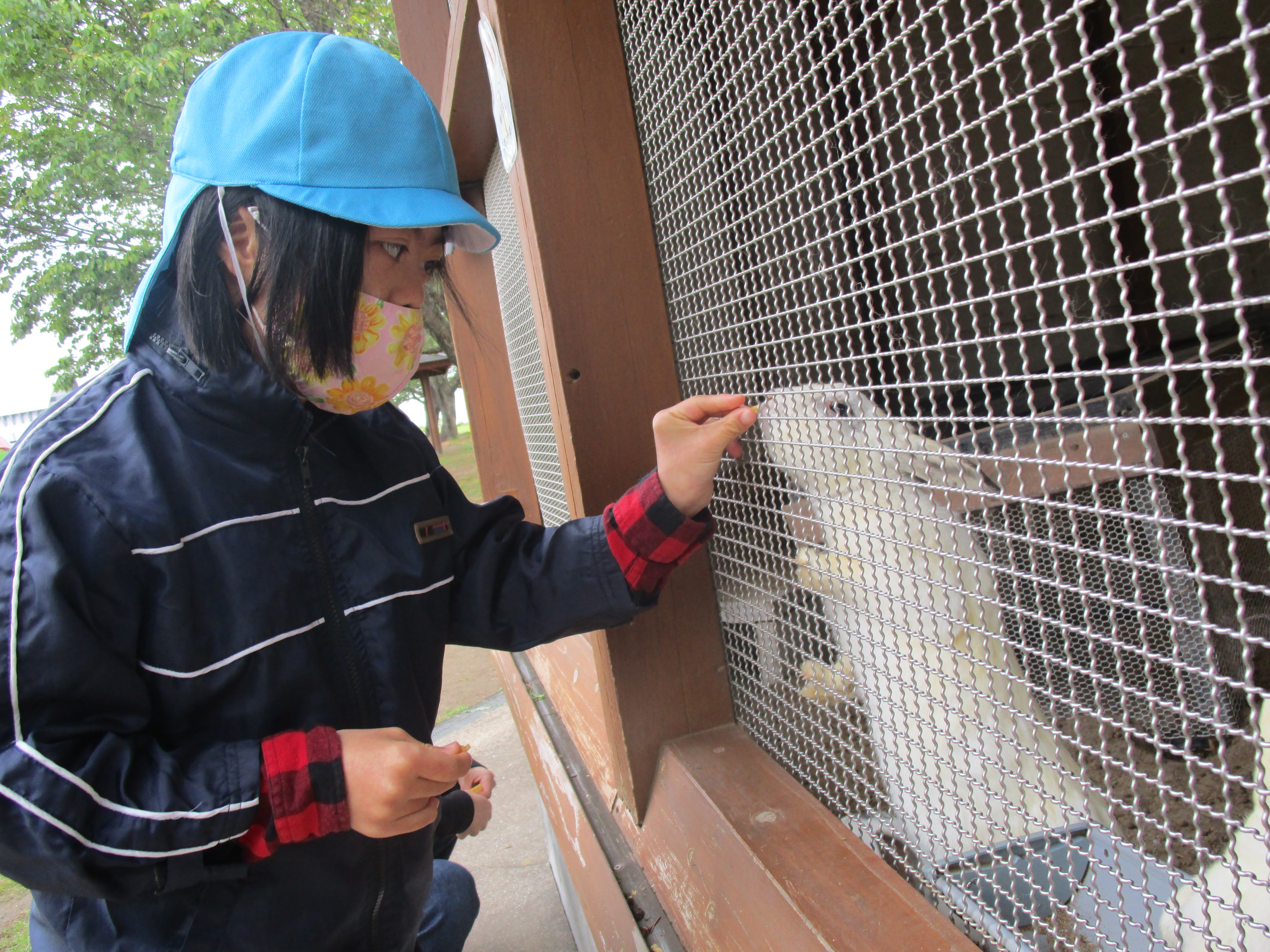 その後、うさぎにエサやりをし、うさぎの口元にエサを持っていって上手にエサをあげることができました。