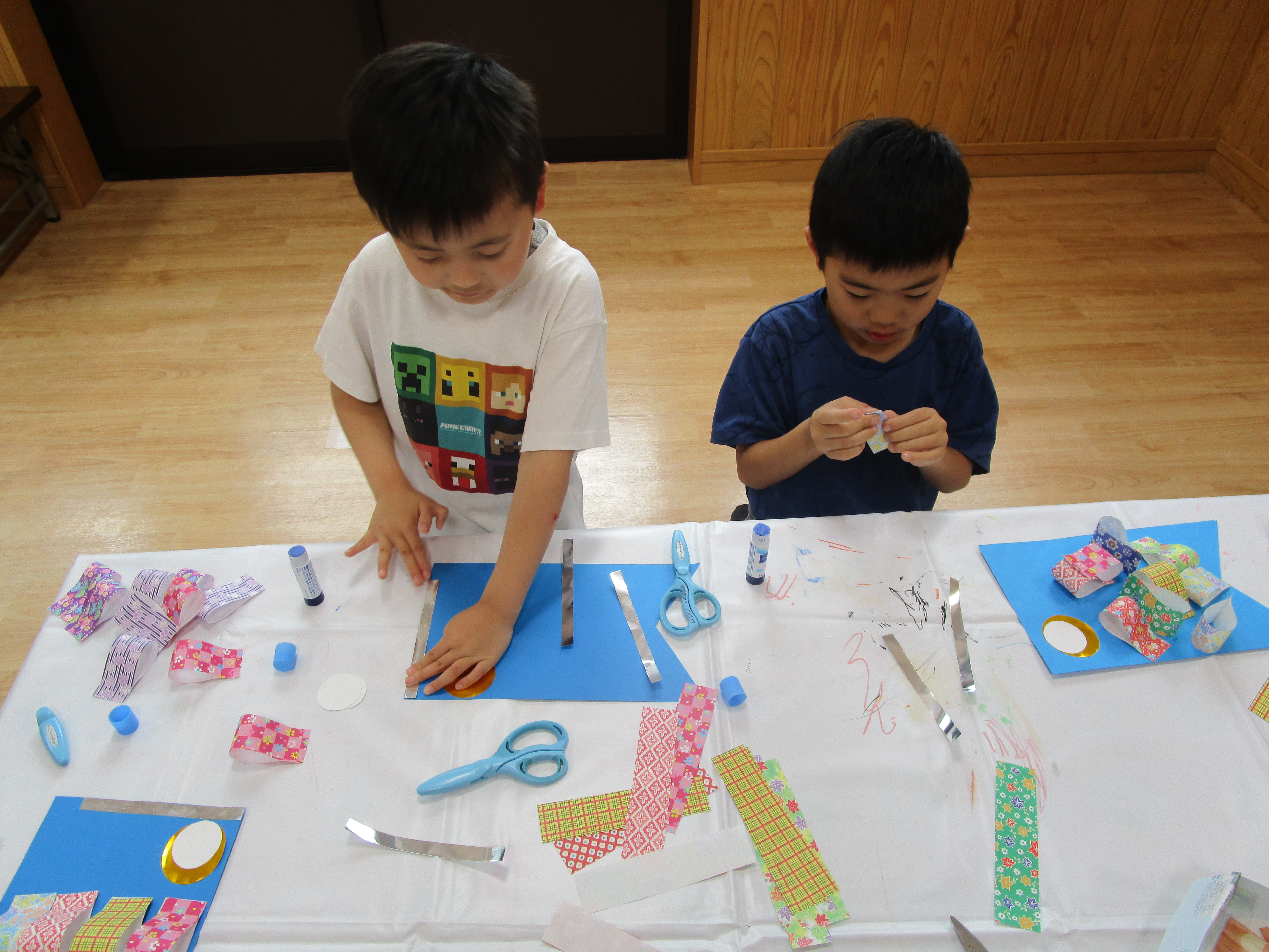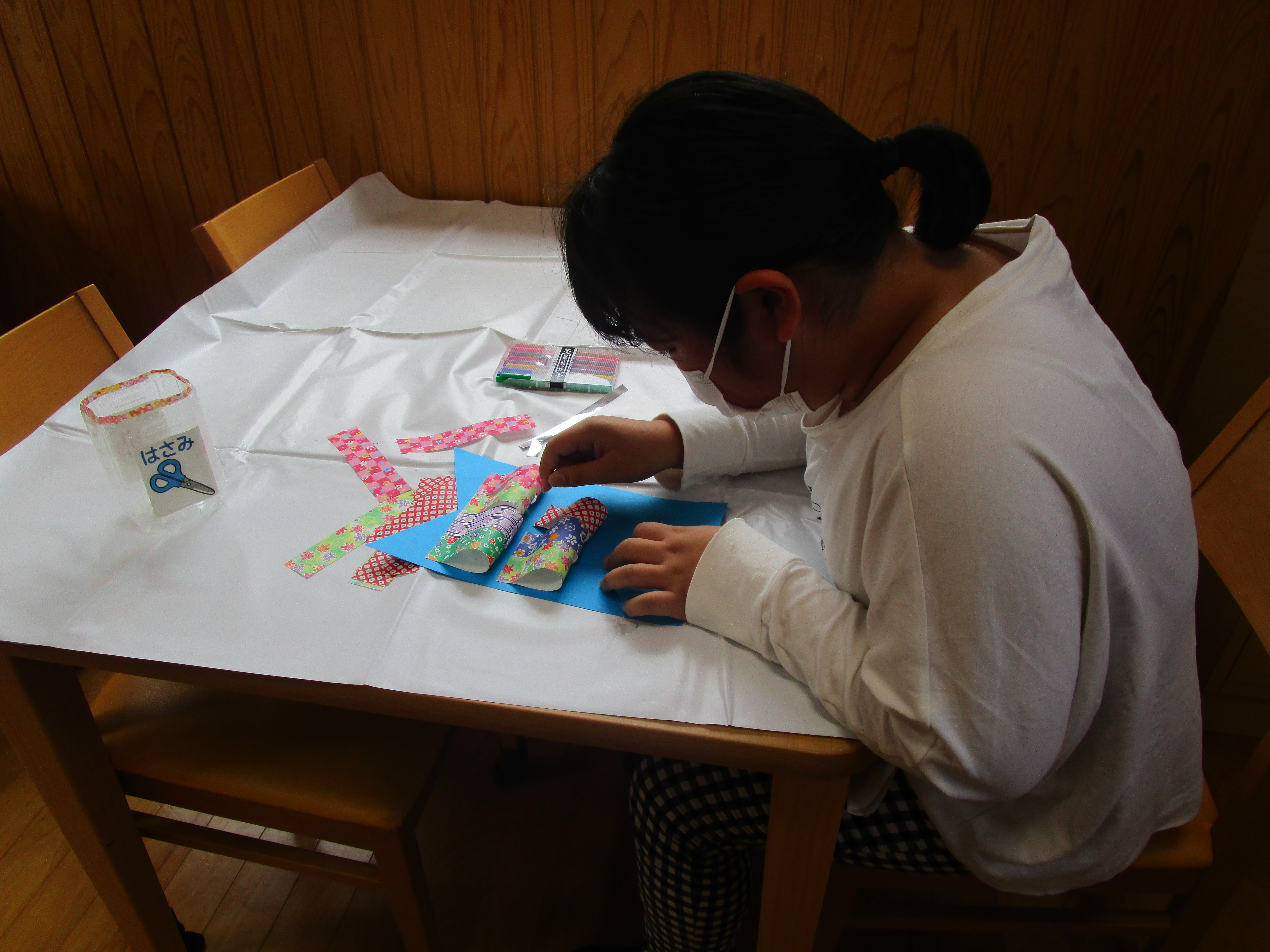 職員の指示通りに作成し、集中して工作に取り組んでました。
