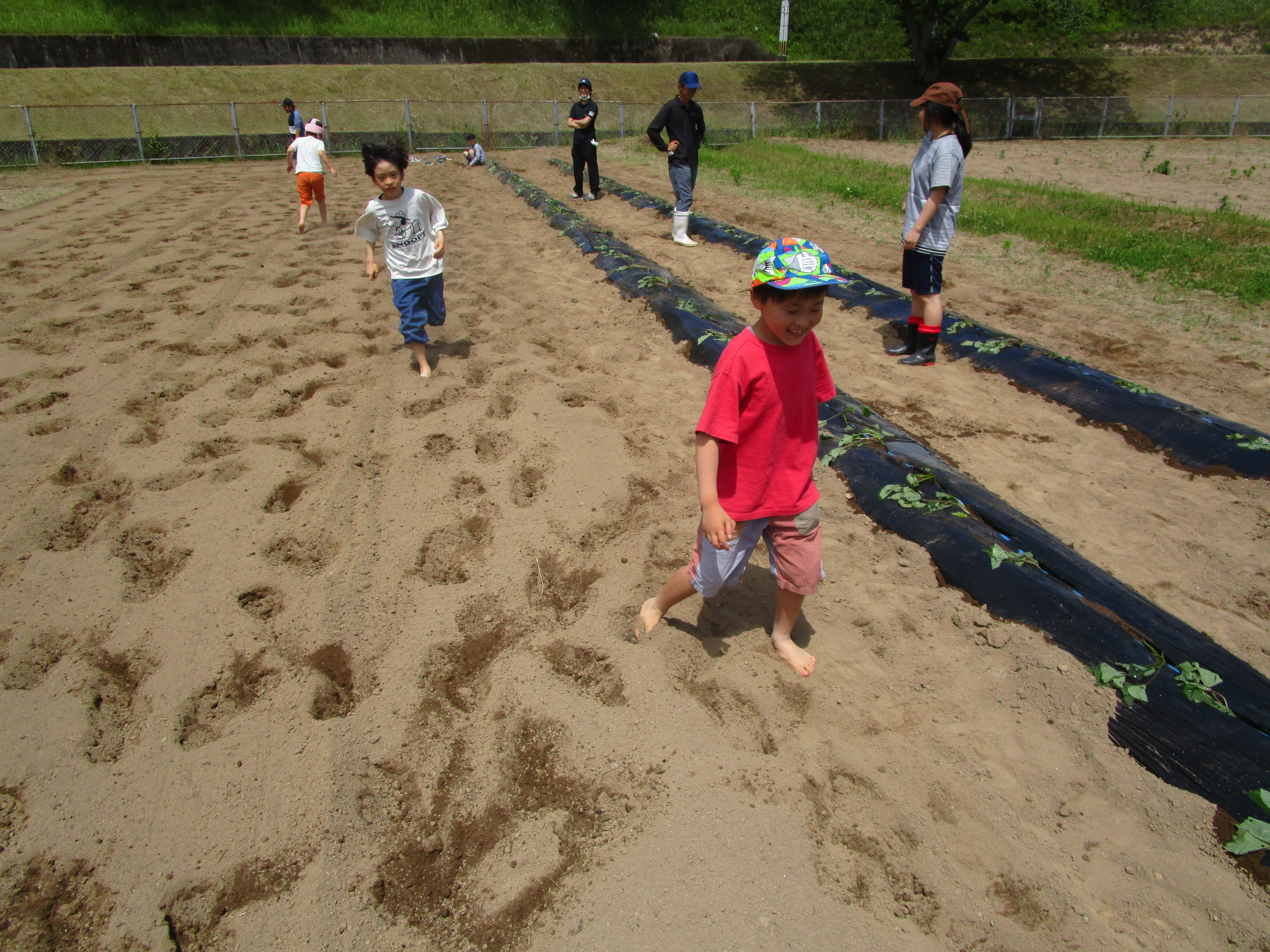 苗植えが終わったら、みんなで耕した畑の土の上で遊びました!