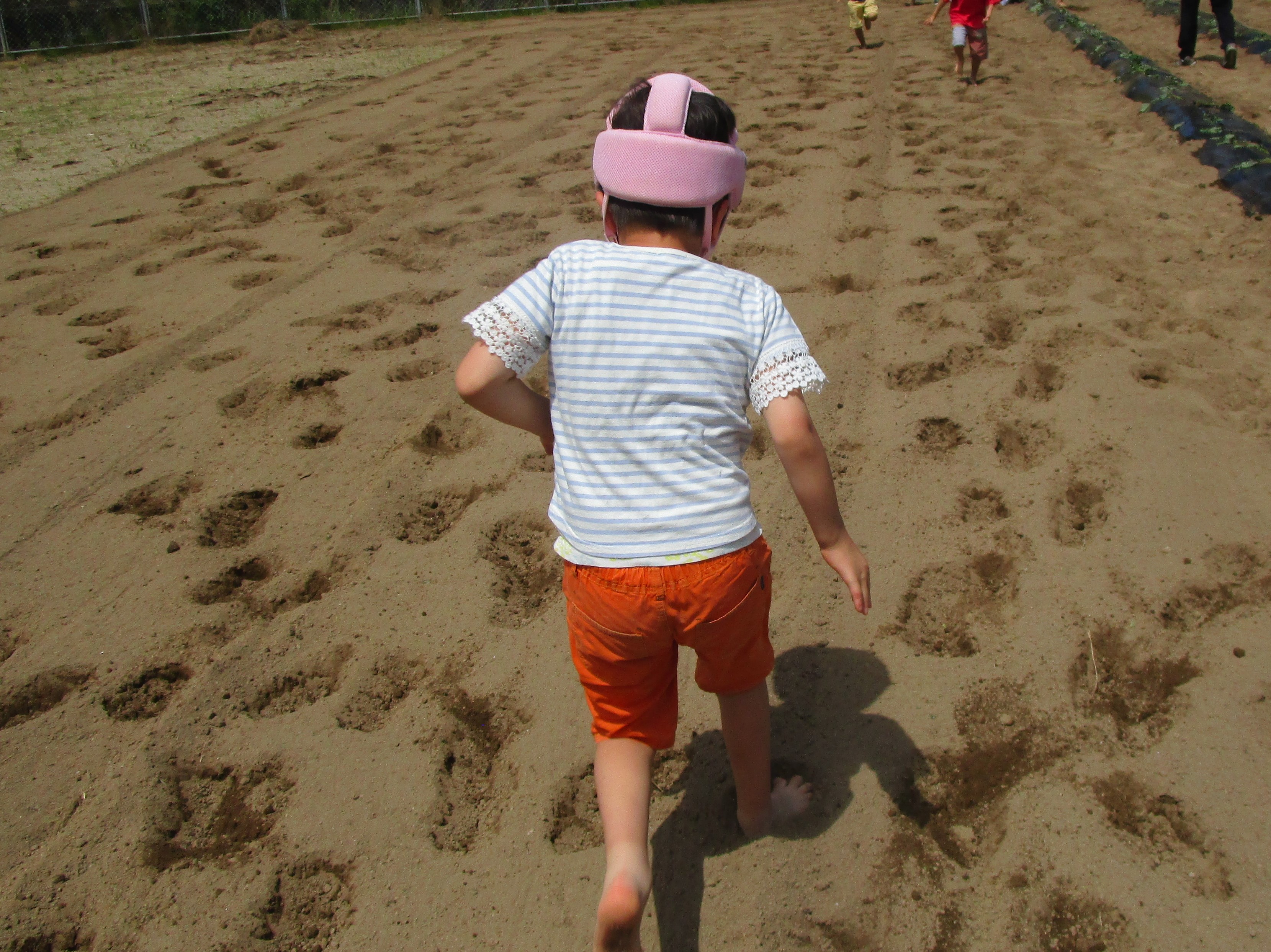柔らかい土の感触が、とても気持ちいいようで、みんな元気いっぱい走り回っていました!