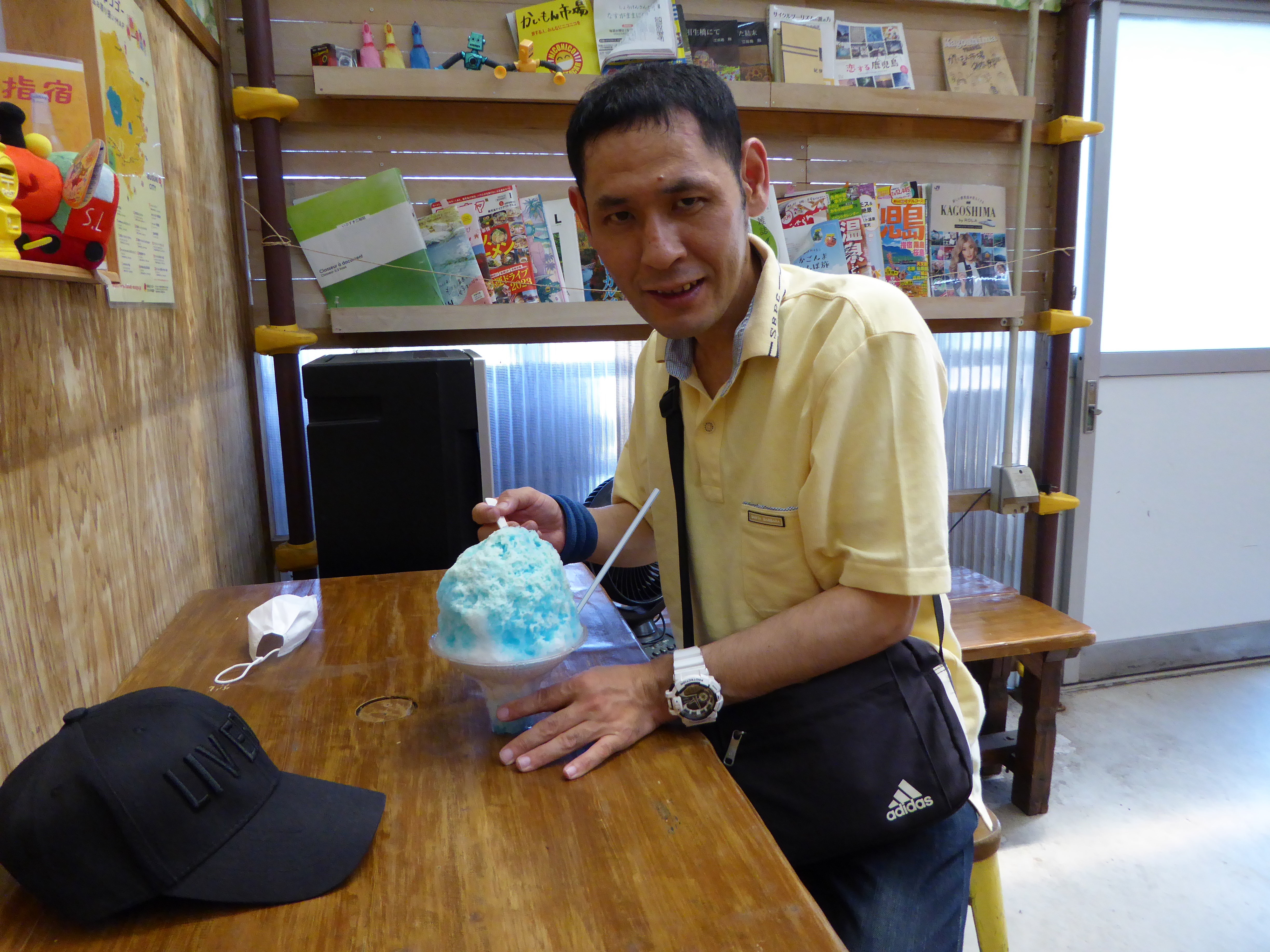 指宿駅からは、バスに乗り換え、JR西大山駅に行きました。開聞岳はてっぺんに雲がかかっていましたが、麓は綺麗に見えており、黄色いポストや幸せの鐘を背に等といろいろなところで写真を撮りました。駅の向かい側に物産館があり、お土産を購入する方やアイスクリームを堪能される方もいました。