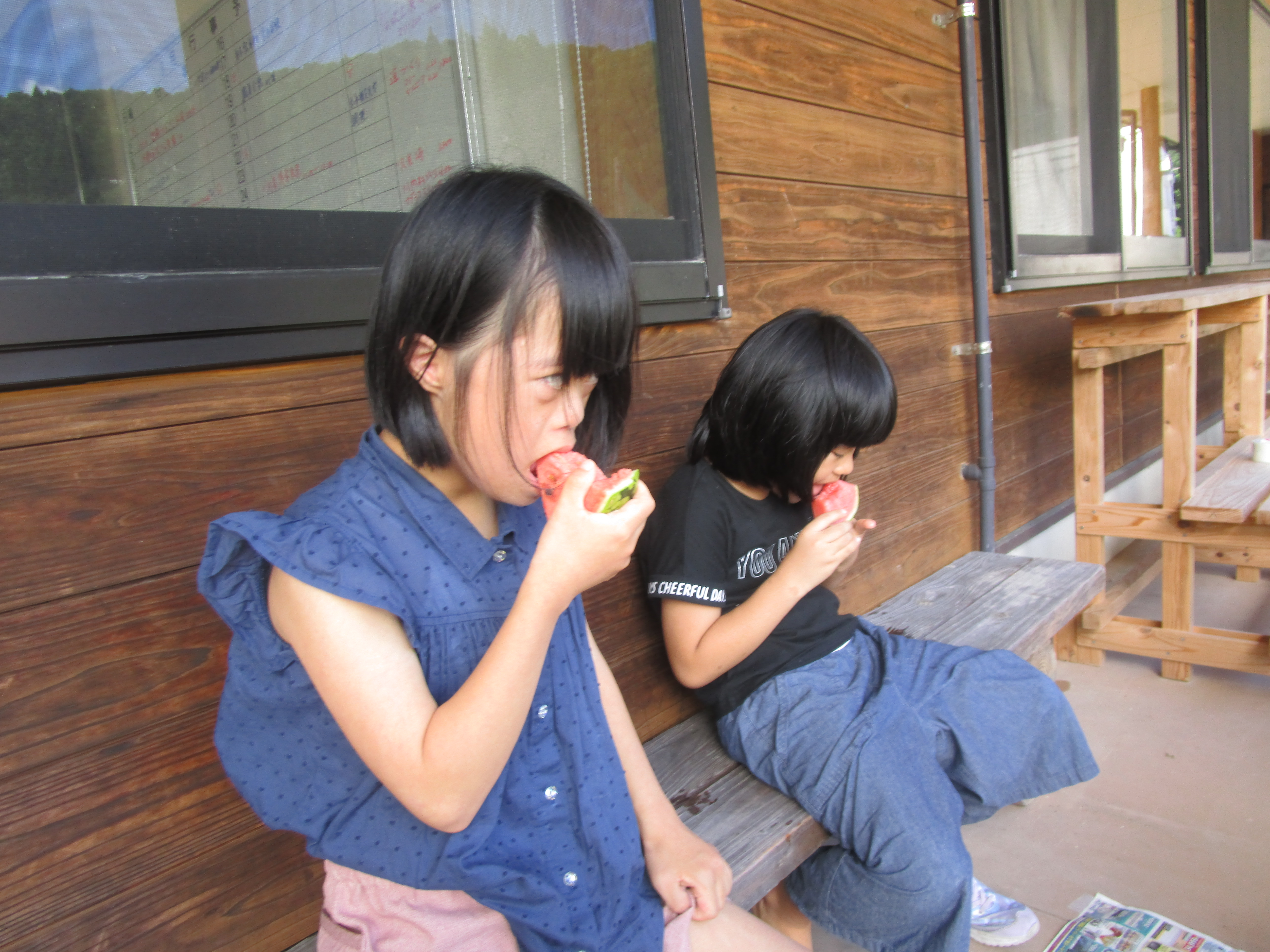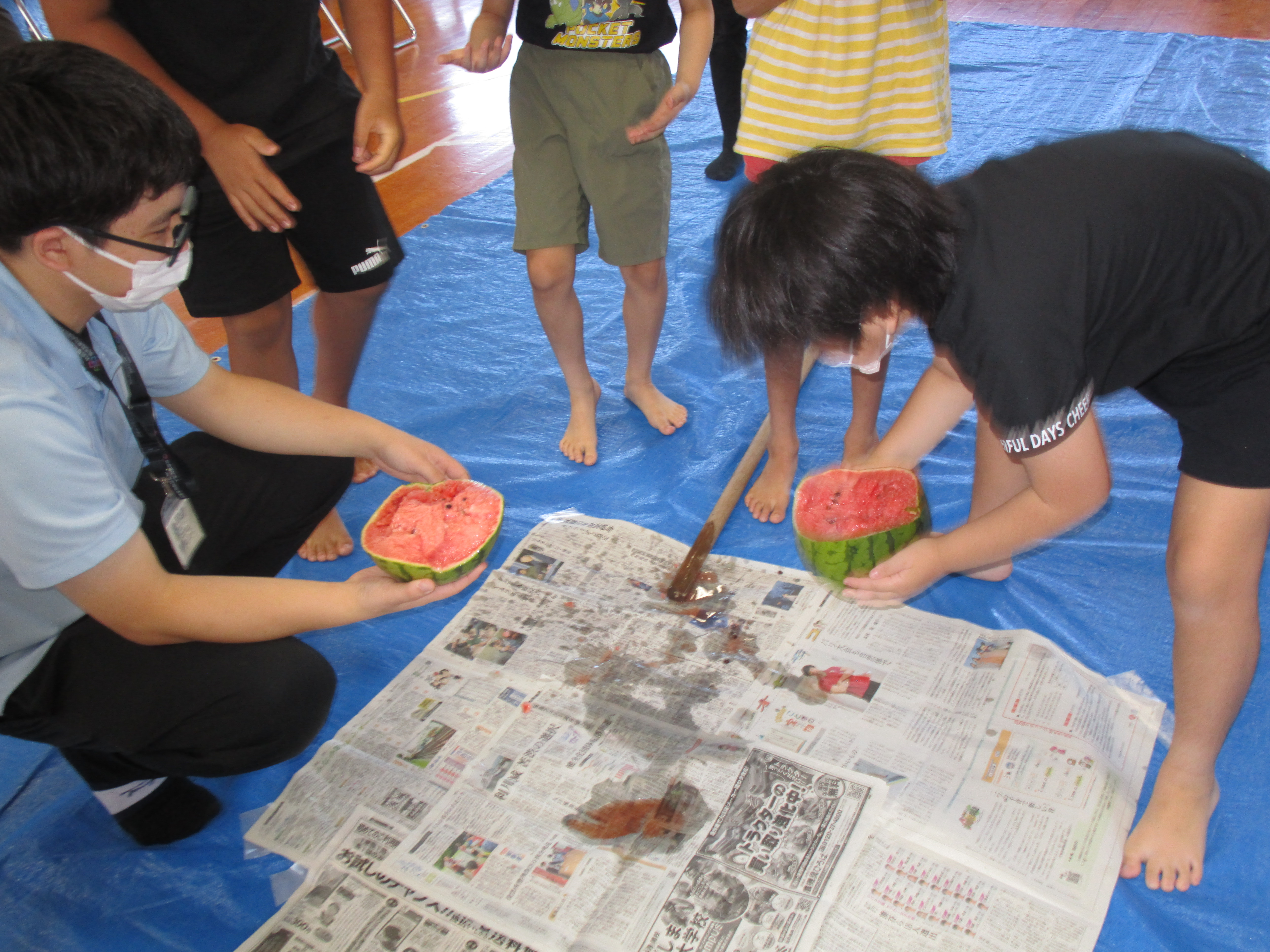 割れたスイカは子どもたちみんなで美味しく食べました。