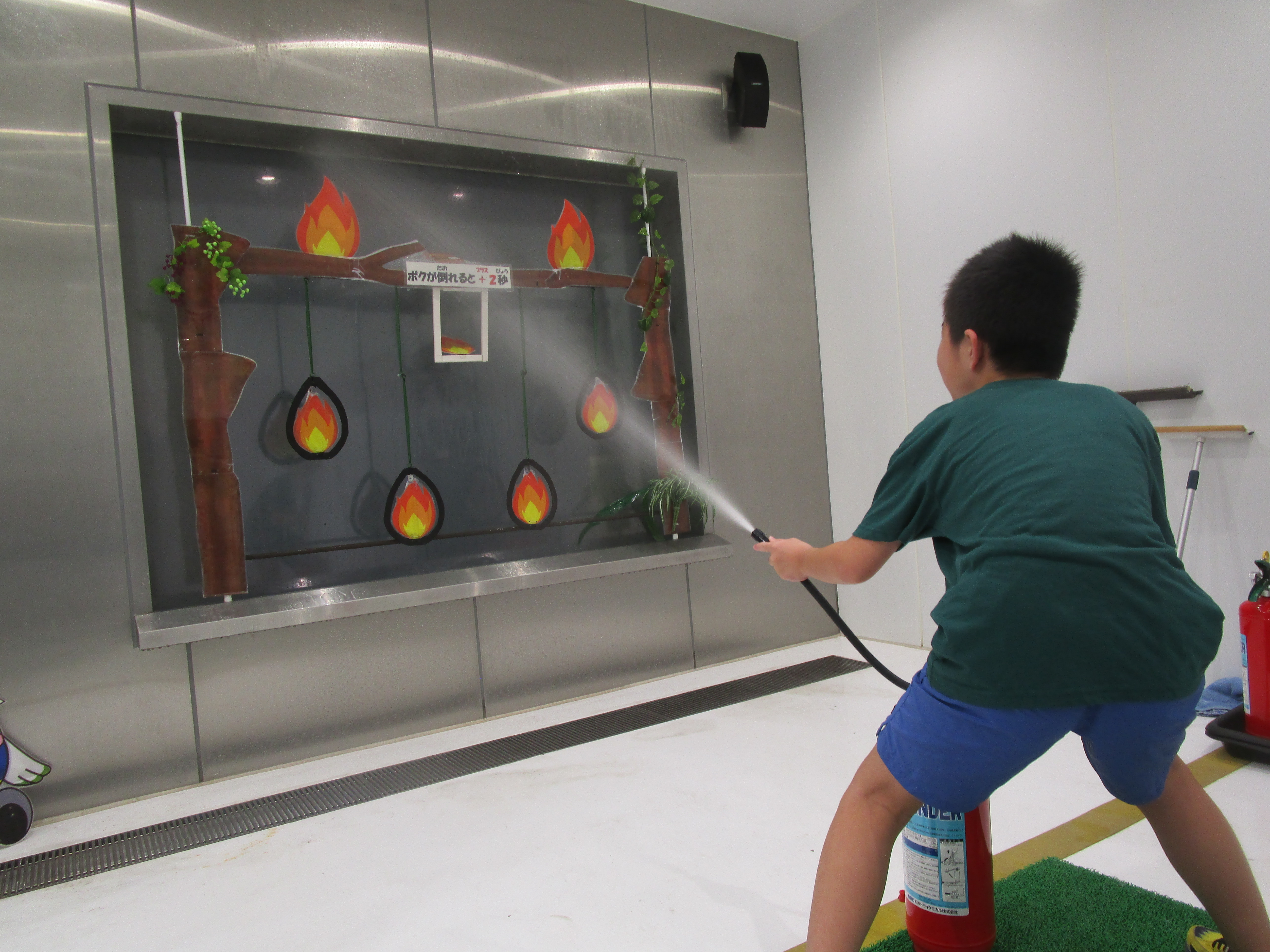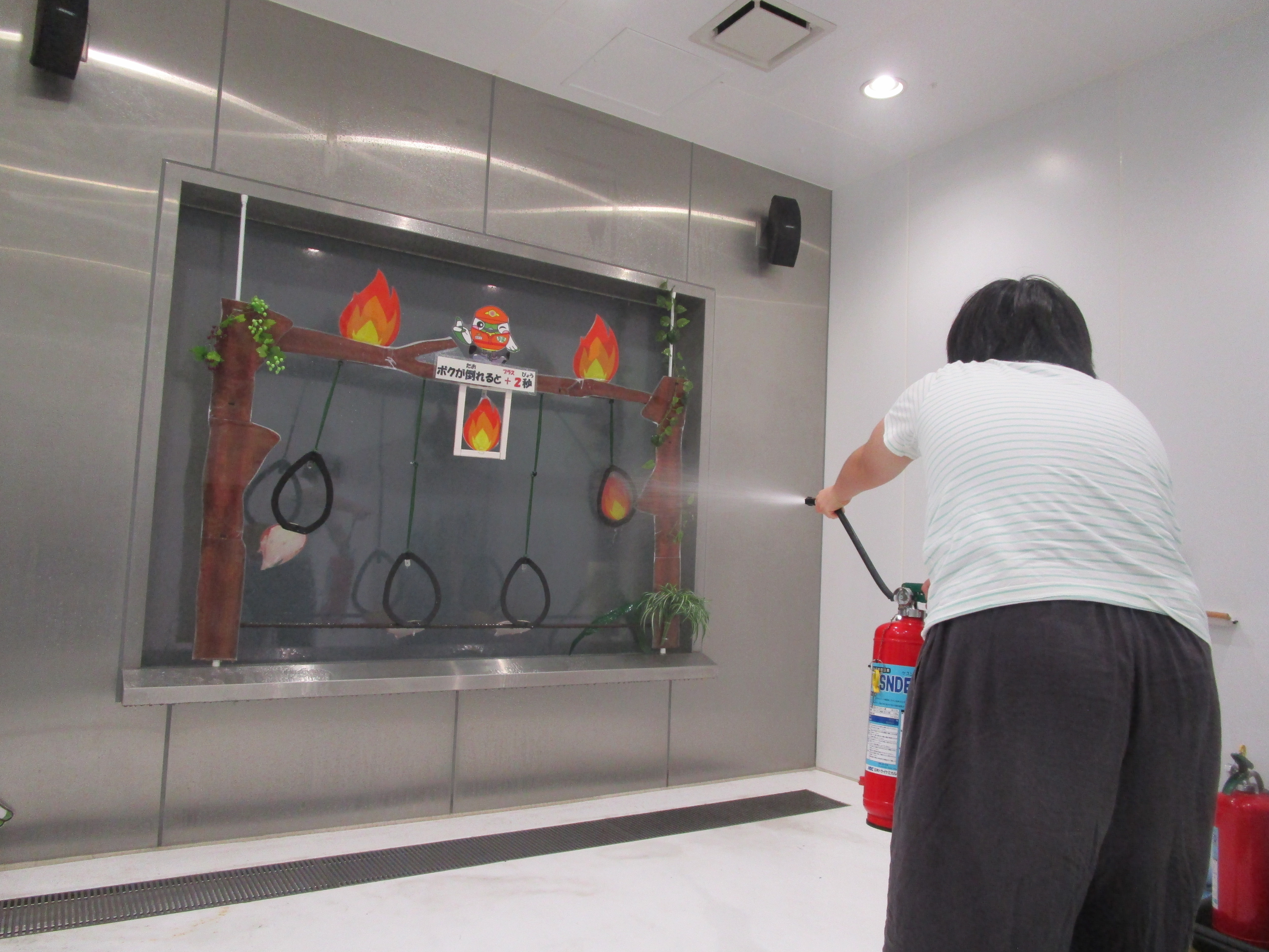 消火器体験では、みんな上手に火元を狙って噴射することができていました。