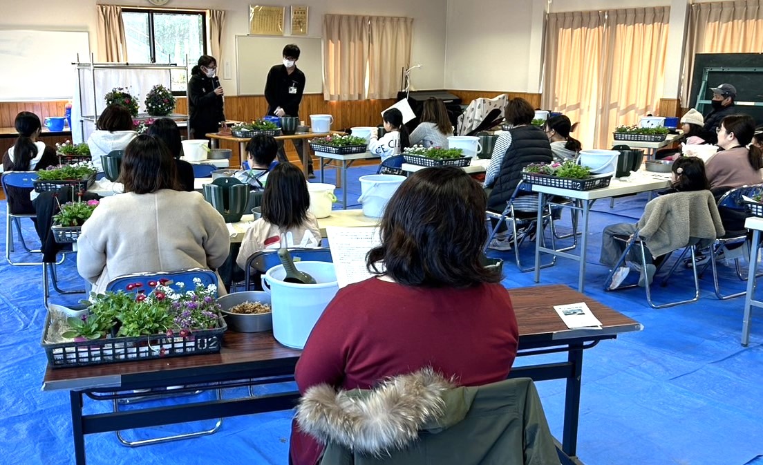 当日は、地域の12組29名のご家族にご参加いただきました。川内自興園で育てた花をバスケットいっぱいに飾り、それぞれ個性あふれるクリスマスらしいハンギングなどが完成しました。 今後も地域のみなさま方とのつながりを大切にしたイベントを考えていきますので、ご参加のほどよろしくお願いします!