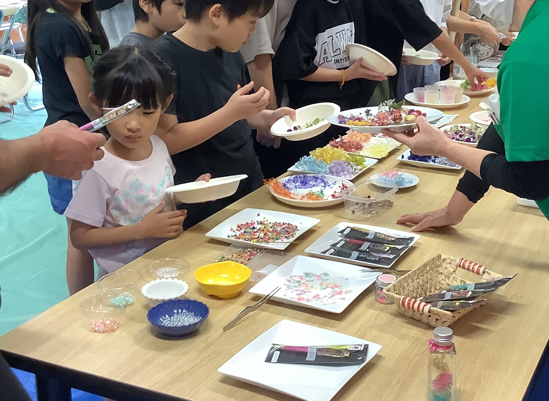 今年度は第2回目として、8/26(火)に川内自興園コミュニティ講座「夏休みハーバリウム教室」を開催しました。今回はハーバリウムの瓶とペンを作成し、みなさんどの花材やアクセサリーを使おうか、家族で和気あいあいとしながら取り組まれていました!