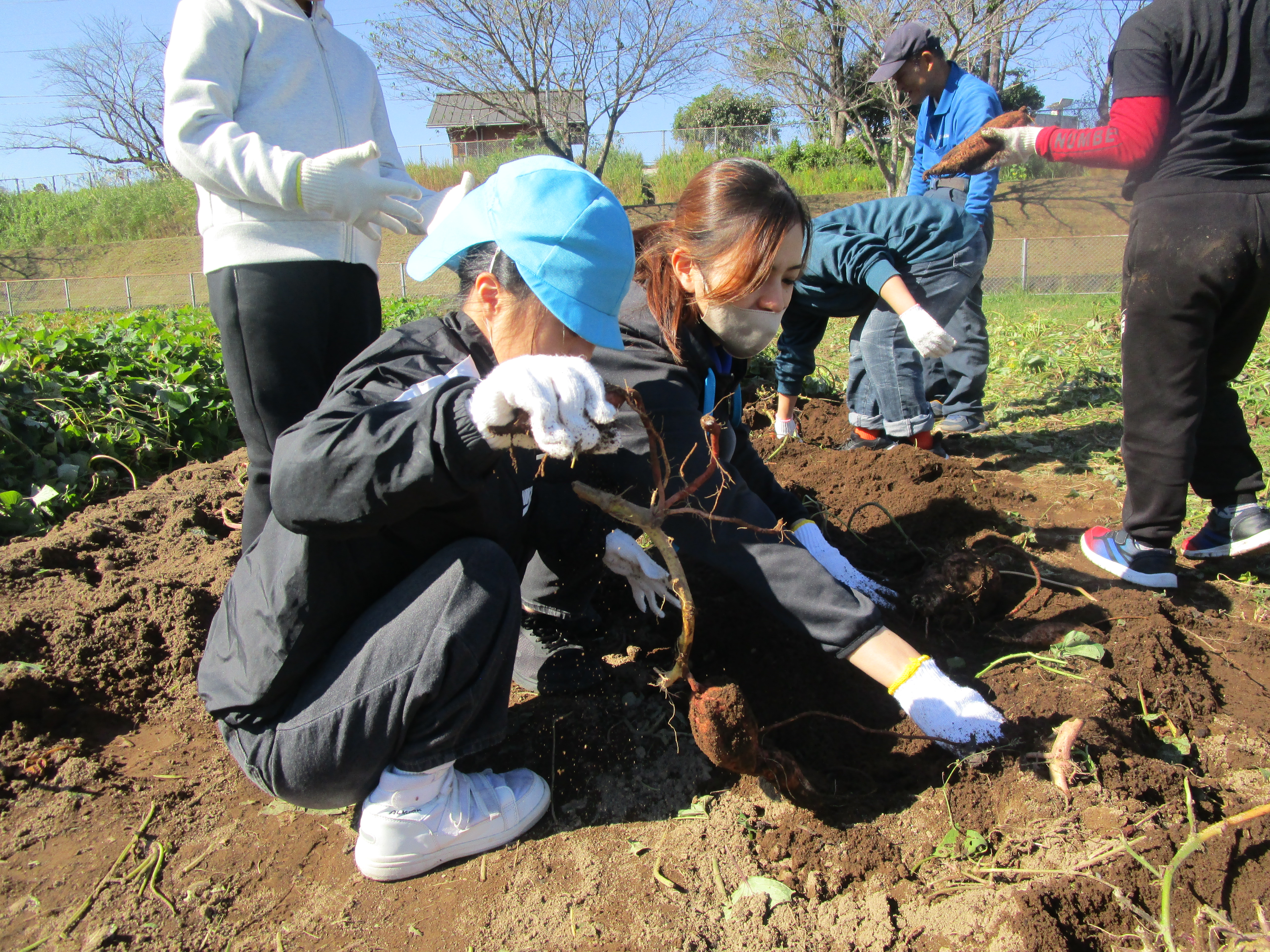 職員と一緒にサツマイモがどこにあるか探しながら、土の中を掘っていき、