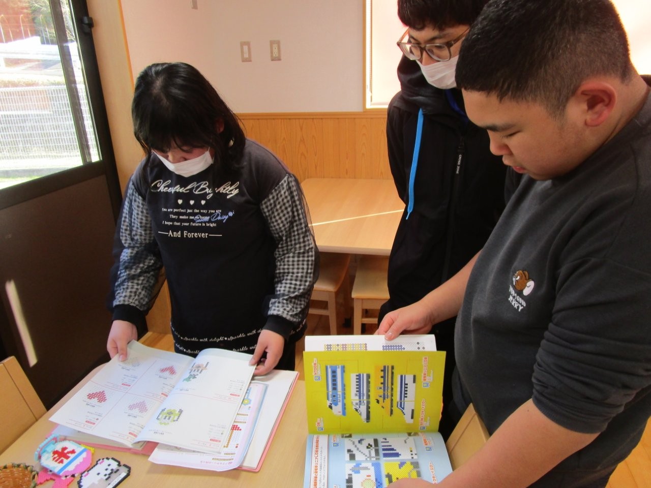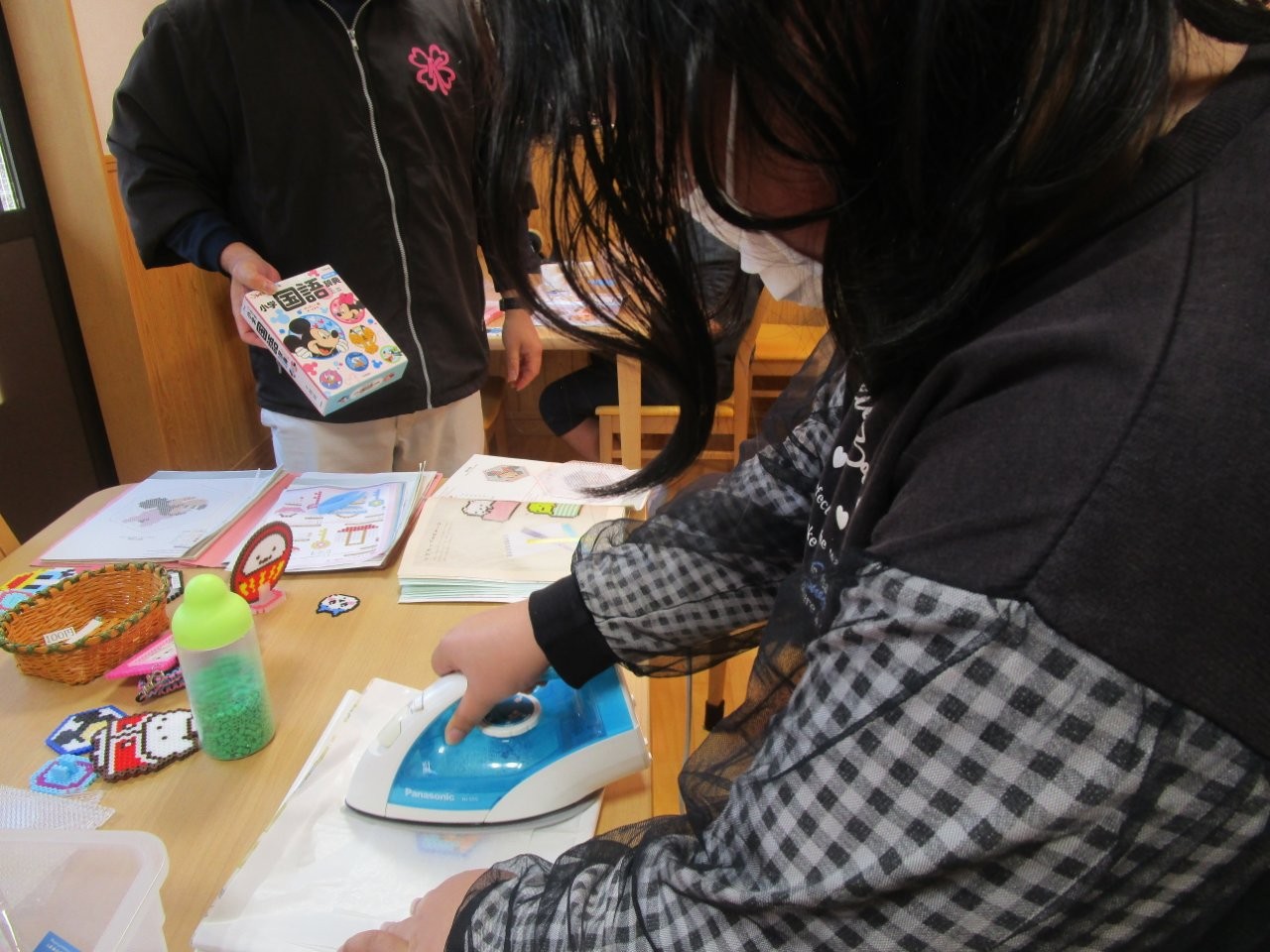 また作業体験ではアイロンビーズを行い、かわいい作品を作ることができました。